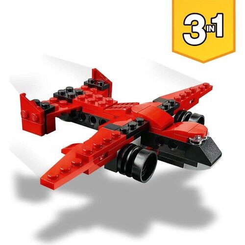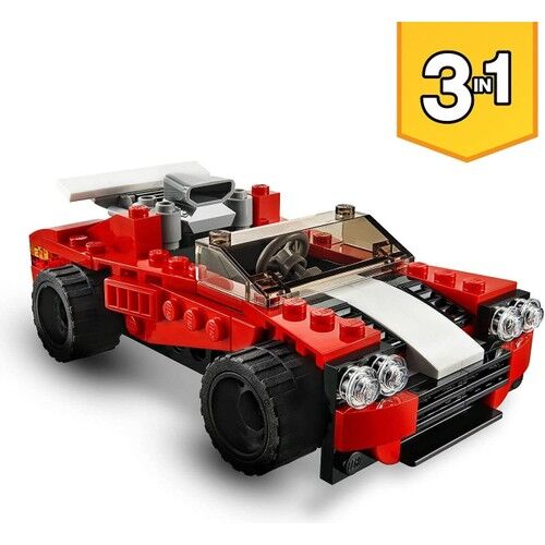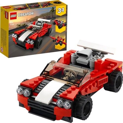 Bu kırmızı spor arabaya atla ve yola çık! Bu havalı kırmızı siyah makinenin güçlü motorunu çalıştır, ayağını gaz pedalına bas ve git! Daha fazla eğlence için havalı bir hot rod’a dönüştürerek yeni bir hız rekoru kır, eski model bir uçağa dönüştürerek hava gösterisine git veya hayal gücünü serbest bırak ve yepyeni bir şey oluştur. Bu harika 3’ü 1 arada setle hız tutkunu yaşa!