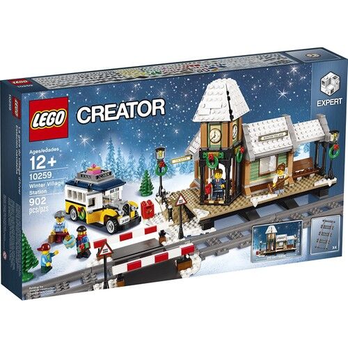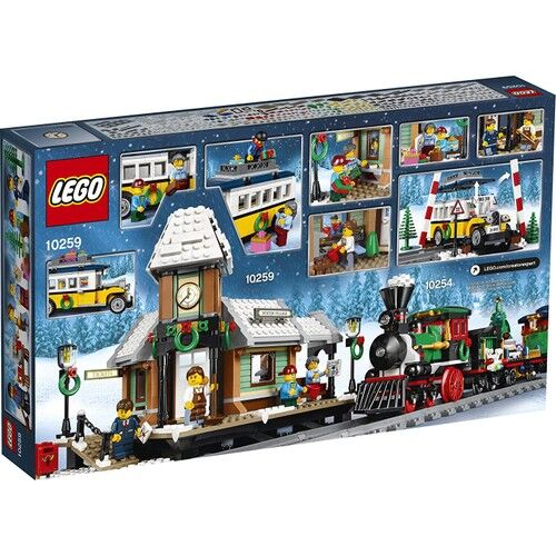 Şenlikli kış tatil seti ile süslenmiş istasyon, aydınlatma kulesi ve saat kulesi, platform, posta kutusu, yeşil ağaçlar, ikiz engelleri ve ışıkları ile karlı sınıf geçişi ve açılış ile güzel dekore edilmiş bir otobüs ile karlı bir demiryolu istasyonu bulunmaktadır. Bu LEGO® Creator Expert modelinde ayrıca bir zaman çizelgesine sahip bir bilet sayacı ve gezginlere bilet sürmek için odaya sahip bir işlem sayacı penceresi, ayrıca bir servis ambarına sahip bir kahve dükkanı ve espresso makinesi, bardaklar, kasa ve menü. 5 minifigür içerir.