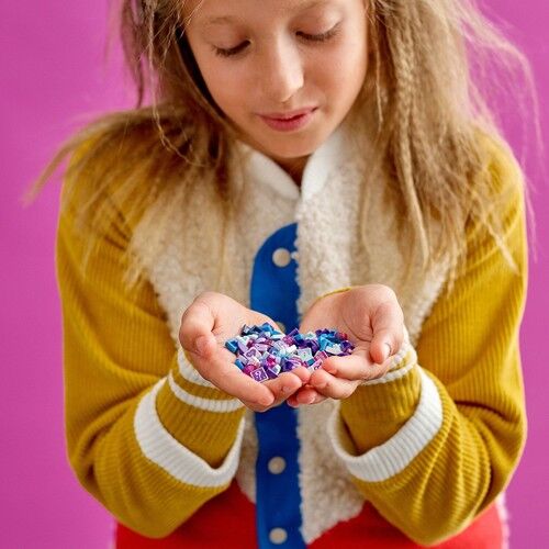Çocuklar ve sanat ve el işi tutkunları, bu Süper Sırlar temalı Ekstra DOTS – Seri 3 (41921) paketine bayılacak! Tüm farklı LEGO® DOTS setleriyle uyumlu olan bu ekstra DOTS parçaları, çocuklara tasarımlarını yeni şekillerde genişletme ve giysilerine, duygu durumlarına ya da oda dekorlarına uygun hale getirmelerine şansı sunar. Ekstra yaratıcılık paketin içinde Bu pakette yıldız ve elmas 3 boyut efektli DOTS parçaları ve 16 olası tasarım arasından özel süper gizli 10 DOTS parçası dahil toplam 107 renkli DOTS parçası bulunur. Böylece çocuklar kendi bilekliklerini ya da oda dekorasyon eşyalarını istedikleri gibi süsleyerek yaratıcı becerilerini geliştirir. Sanat ve El işlerini daha da eğlenceli hale getirin Bu küçük paketin eğlencesi, çocuklara LEGO DOTS setlerini süslerken daha da yaratıcı olma, arkadaşlarıyla değiş tokuş etme ve kendi benzersiz tasarımlarını sergileme şansı sunmasıdır. Paketler, yaratıcı bir çocuğa eğlenceli bir ödül ya da günlük hediye veya diğer DOTS setlerine sürpriz bir ilavedir.