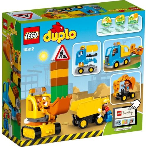 LEGO DUPLO 10812 Kamyon ve Paletli Kazıcı Küçük kazıcılar, bu yapımı kolay inşaat makinalarını çalıştırmaya bayılacak. Paletli Kazıcıyı engebeli arazide gezdir ve büyük kepçesiyle kaz. Çalışan, esnek kolunu çıkararak boyunu kısalt, sonra devirme fonksiyonlu Kamyonu doldur ve hafriyatı taşı! LEGO® DUPLO® yapım parçaları, küçük eller için güvenli olacak şekilde özel olarak tasarlanmıştır. 2 inşaat işçisi DUPLO figürü dahildir.