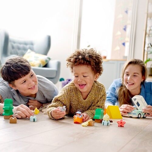 LEGO® DUPLO® Kasabası Ailece Karavan Macerası (10946) oyuncağı, anne babaların ve küçük çocukların paylaşabileceği faaliyetler ve öğrenme fırsatlarıyla doludur. Aile boyu eğlenceli açık hava oyunları Küçük çocuğunuzla ormanda kampa gidin ve ailece bir sürü eğlenceli faaliyet gerçekleştirin. 3 sevimli figür, üst yarısı çıkarılarak kolayca erişilebilen karavana sığar. Tavana yüklenen ekipmanlar, karavanı dikkatlice sürerek kamp alanına vardığınızda bir sürü eğlence sunar. Kumaş çadır hızlı ve kolay bir şekilde kurulur. Nehir maceraları için bir kano, çay yapıp etrafında oturarak ailece gitar çalıp şarkı söylemek için bir kamp ateşi var. Kamerayla ailece kamp anılarını kayda almayı unutmayın! Küçük çocuklar için eğitici fiziksel oyuncaklar LEGO DUPLO oyuncaklar; açık uçlu eğlenceyi, kendini ifadeyi ve eğlenerek öğrenmeyi okul öncesi yaştaki çocukların ellerine verir. DUPLO oyun setleriyle anne babalar ve küçük çocuklar birlikte oynarken, değerli gelişimsel aşamaları paylaşabilir.
