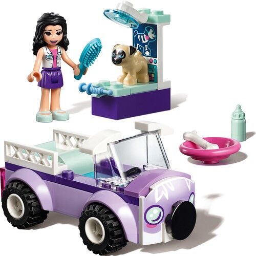 LEGO® Friends Emma’nın gezici LEGO Friends veteriner kliniği ile hasta hayvanlara bakmasına yardım et! LEGO® Friends Emma’nın bütün Heartlake City’de hasta hayvanları kurtarmasına yardım et. Havalı veteriner kamyonetine atla ve hasta pug Toffee’yi almaya git. Emma’nın mini pug köpeği veteriner yatağında muayene etmesine yardım et, şırıngayla ilaç ver ve bir kemik ve biberonla onu besle. Kendini daha iyi hissetmesi için tüylerini fırçala.