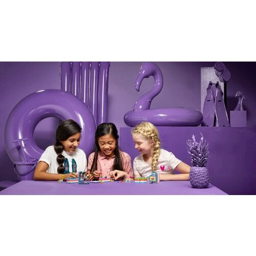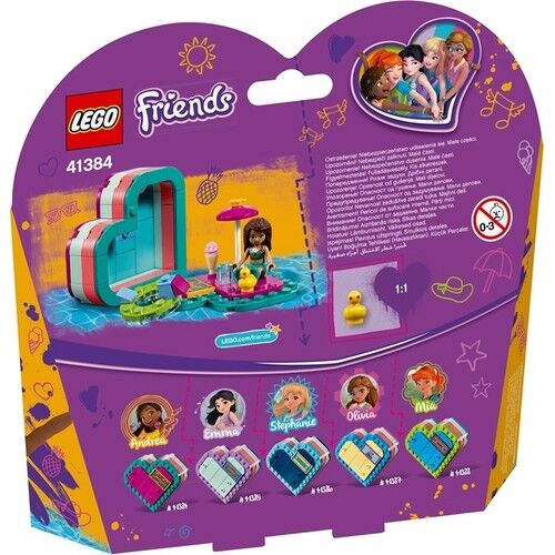 Küçük bir Kalp Kutusu’nda Andrea’nın gün ışığından bir parça LEGO® Friends Andrea ile birlikte yüzme havuzuna dal. Güneşin altında dondurma yiyerek dinlenmesi için ördekli can simidine oturt. Güneşten korunması için şemsiyeyi aç. Bütün eşyalarını toplayıp kapağı kapattığında, gün ışığını gittiğin her yere yanında götürebilirsin.