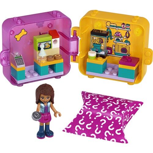 En yakın evcil arkadaşını alışverişe götür. Evcil hayvan dükkanına uğra ve hayvan dostuna lezzetli ödüller al. Güzel egzotik balığın akvaryumda yüzüşünü izle. Alışverişe çıkan Andrea’nın evcil hayvanına hediye seçmesine yardım et. Küpü gittiğin yere götür ya da ikiye ayırıp eğlenceyi en iyi arkadaşınla paylaş! Diğer 4 LEGO® Friends Alışveriş Oyun Küpüyle birleştirerek ya da üst üste dizerek mini bir alışveriş merkezi yap!