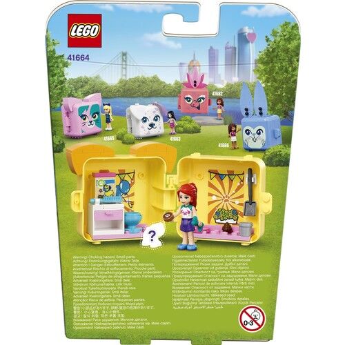 • Bir LEGO Friends Mia mini bebek ve sürpriz renkte bir süs köpeği, ayrıca süs köpeğinin kemiğini ve bisküvisini koymak için parçalarla yapılan bir dolap içerir.