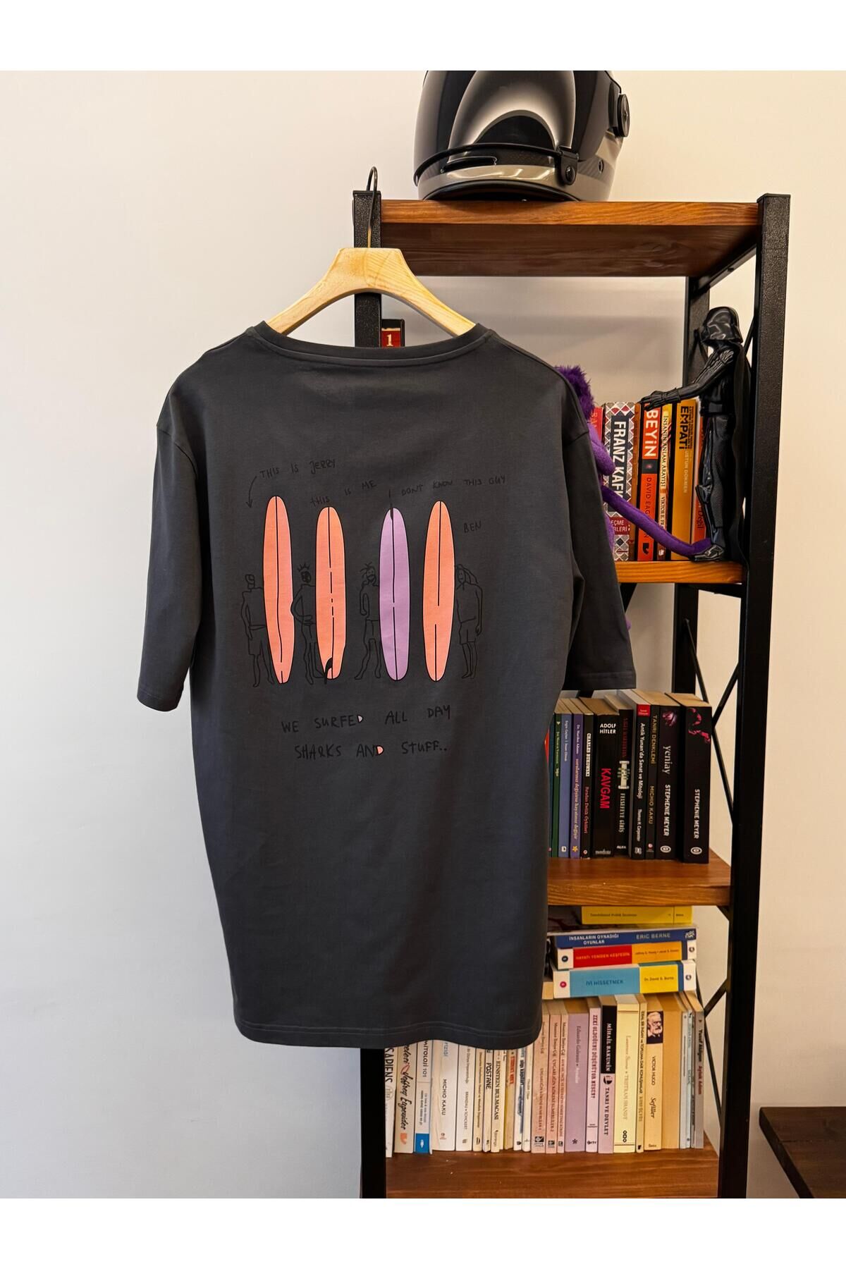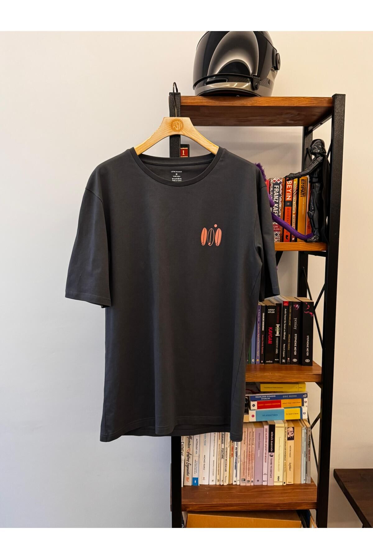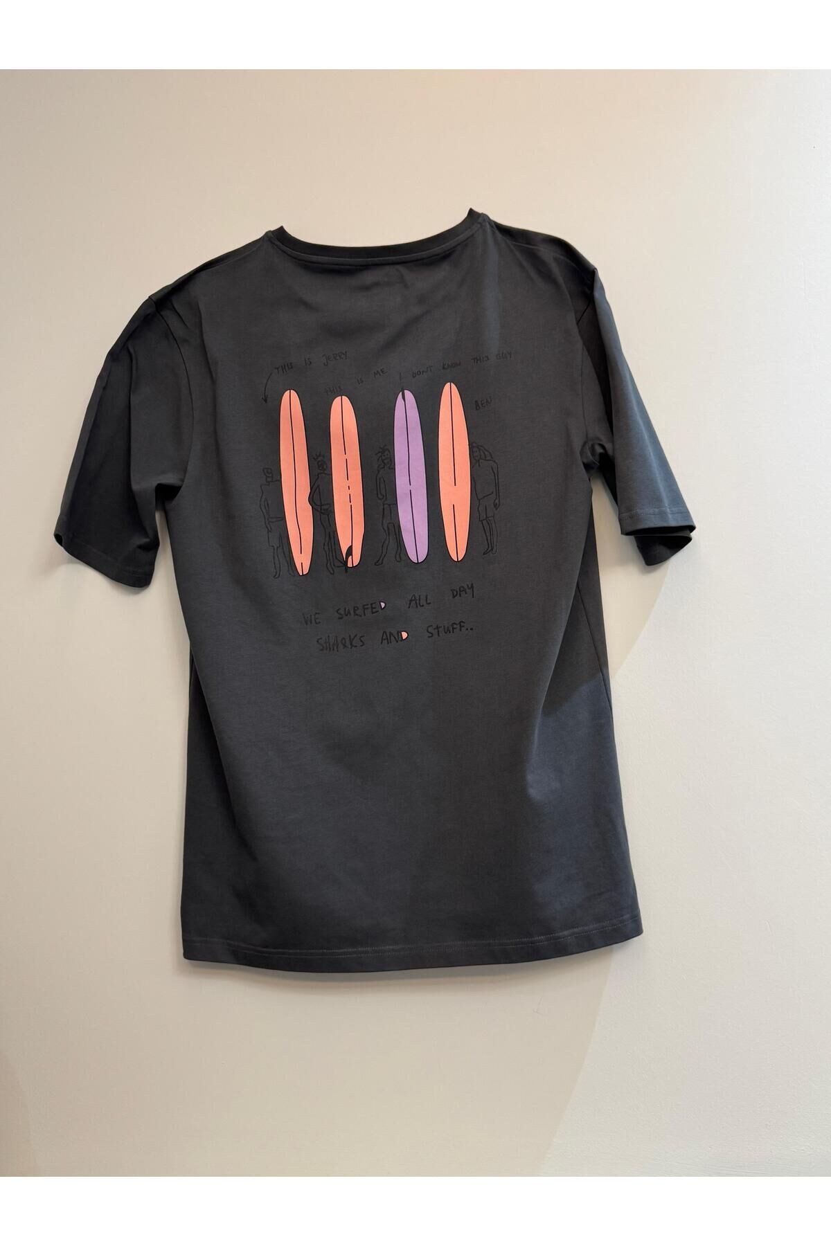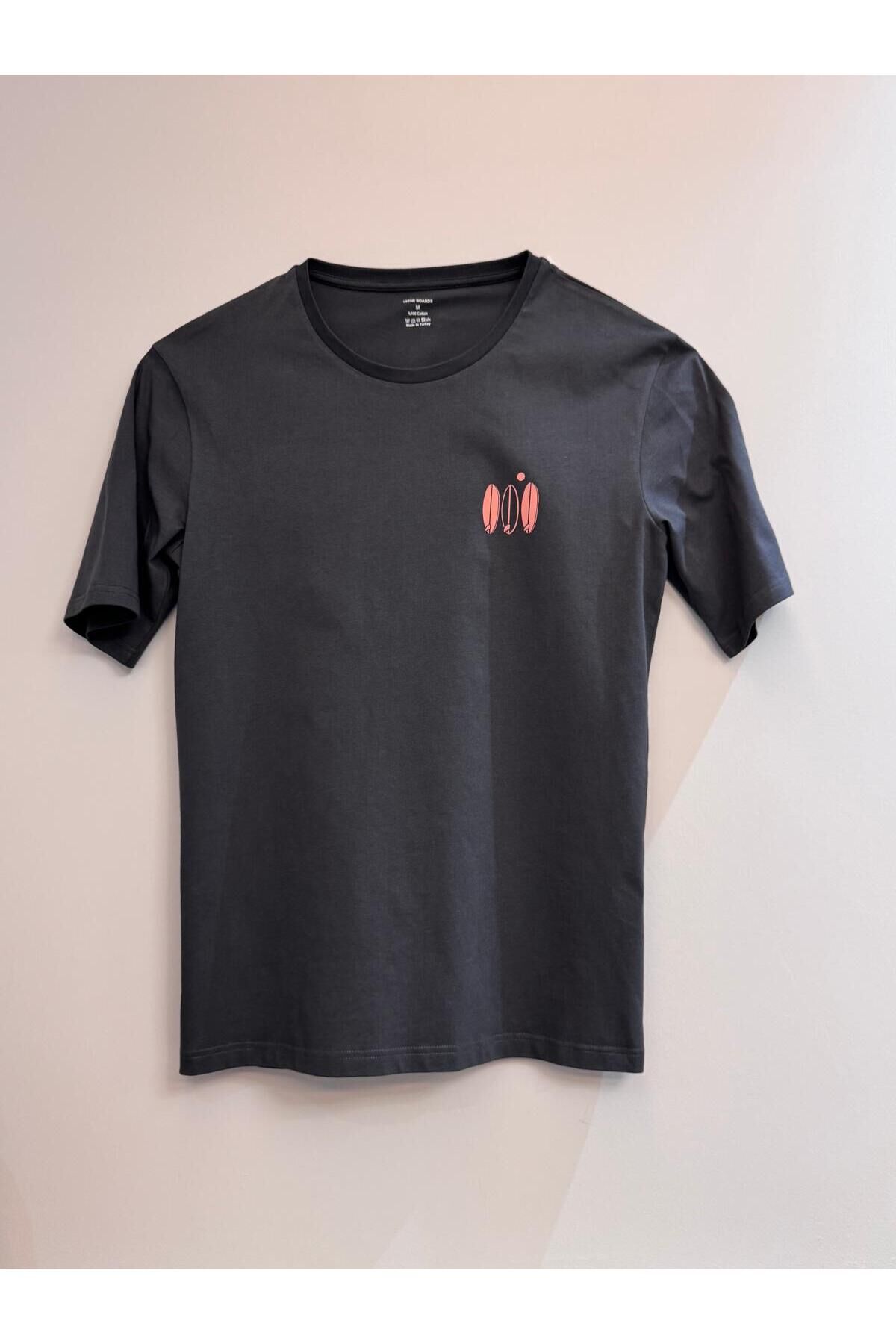 Lethe Boards %100 Organik Pamuk Sup Paddle Board Baskılı Bisiklet Yaka Oversize Erkek Tişört - Gri