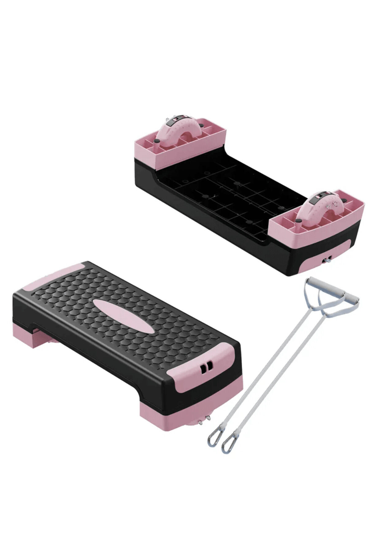 2in 1 Fitness Aerobik Step Tahtası & Denge Pedalı Eğim Ayarı ve Çekme Halatları 68x28x10/15cm