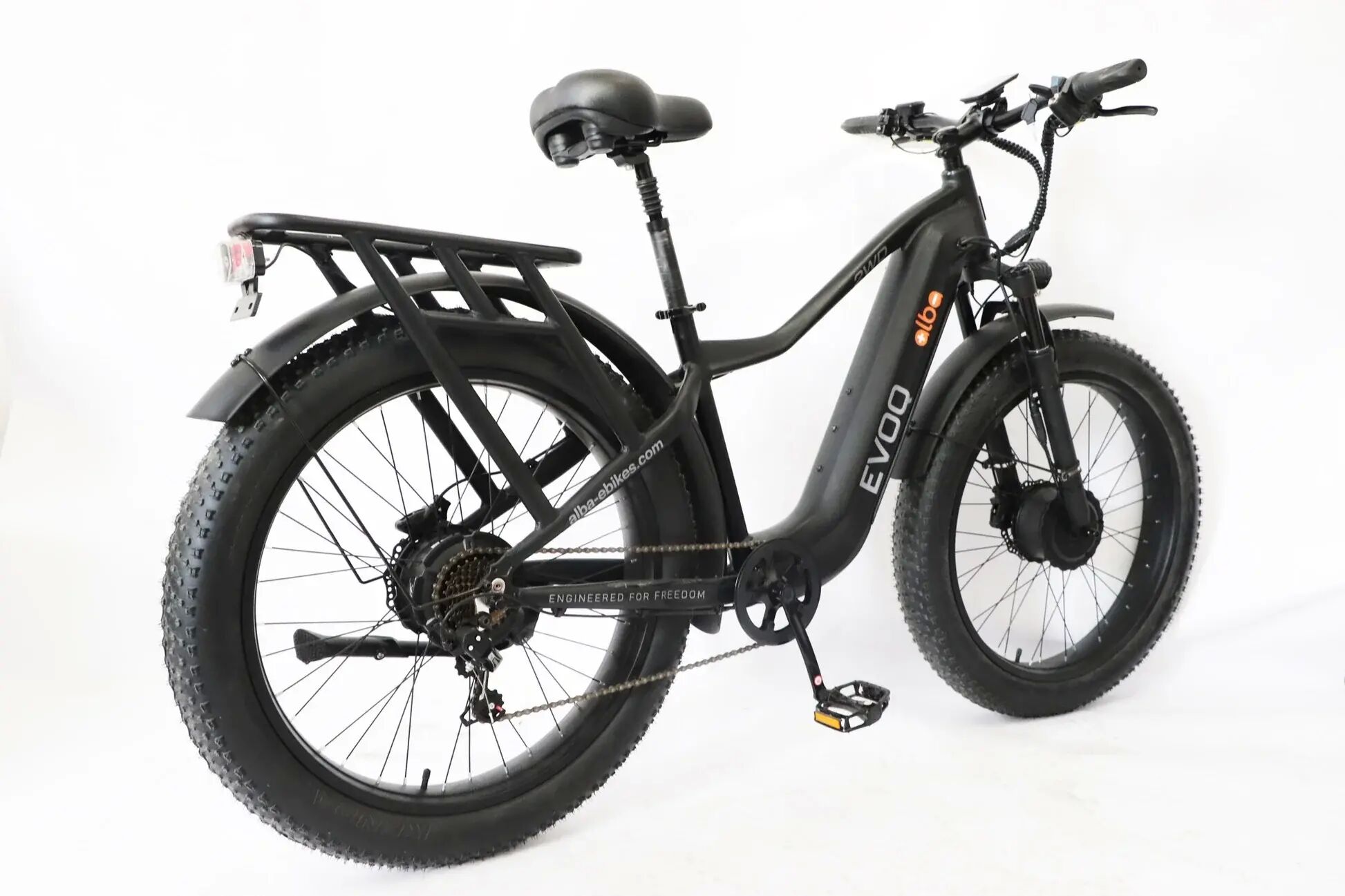 Alba EVOQ, araziyi şehir genelinde sürdürebilmekle birleştirici yeni nesil elektrikli sürüş deneyimini temsil ediyor. 48V yüksek torklu çift motor sistemiyle donatılan Dual Drive (2WD) teknolojisi, sürüş ön, arka veya her iki motorla aynı ve kullanma özgürlüğü sunar. Güç, kokpit üzerinden uzaktan yönetilir; Böylece şehir yollarında maksimum verimlilik, arazide ise üstün çekiş ve tırmanma performansı elde edilir. Standart 48V 15Ah (720 Wh) kadroya tam entegre batarya uzun menzil sağlar; Günlük suluk tipi ikinci batarya ile toplam kapasite 48V 25Ah'ye (1200 Wh) kapasite sınıfının en yüksek batarya depolama kapasitesi sunar. Çift batarya ve çift motorlu sistem tamamen otomatik ve kolay yönetilebilir. Alüminyum alaşımlı kadro, ayarlanabilir sabitleme sistemi ve geniş 26×4.0 lastikler, zeminde dengeli ve güvenli bir sürüş sağlar. Hidrolik disk frenleri güçlü duruş sağlarken, IPX5 seviyesinde tam su geçirmez zorlu özellikler bile güvenli kullanım sunar. Entegre LED uzak, sinyal ve fren uyarı sistemleriyle Alba logolu arka aydınlatmanın sürüş özellikleri ve görünürlüğü artırılıyor. Türkiye'de bir ilk olan kamuflaj desenli kadro tasarımı, doğanın içinde kaybolmadan onunla bütünleşmenizi sağlar; siyah versiyonu ise şehirde minimalist bir güç hissi yaratır. Alba EVOQ, trafiğe kapalı alanlar ve off-road parkurları için tasarlandı; Yüksek torklu yapısı ve dayanıklı gövdesiyle her düzenlenen performans sunar. Ürün değiştirildiğinde büyük oranda kurulu şekilde çıkarılır; Yalnızca ön teker, pedallar ve monte edilerek birkaç dakika içinde sürüşe hazır hale gelir.