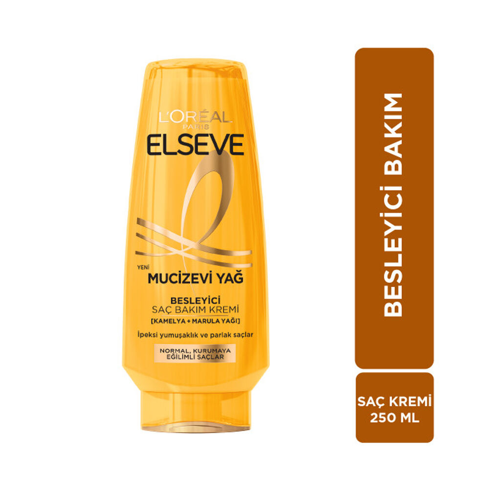 L'Oréal Paris Elseve Mucizevi Yağ Besleyici Saç Bakım Kremi, saçlarınıza derinlemesine bakım yaparak mucizevi bir görünüm kazandırır. Saç tellerini besleyen formülü ile saçlarınızı güçlendirir ve parlaklık kazandırır. Bu ürünle saçlarınızı her yıkamada yeniden canlandırabilir ve besleyebilirsiniz.