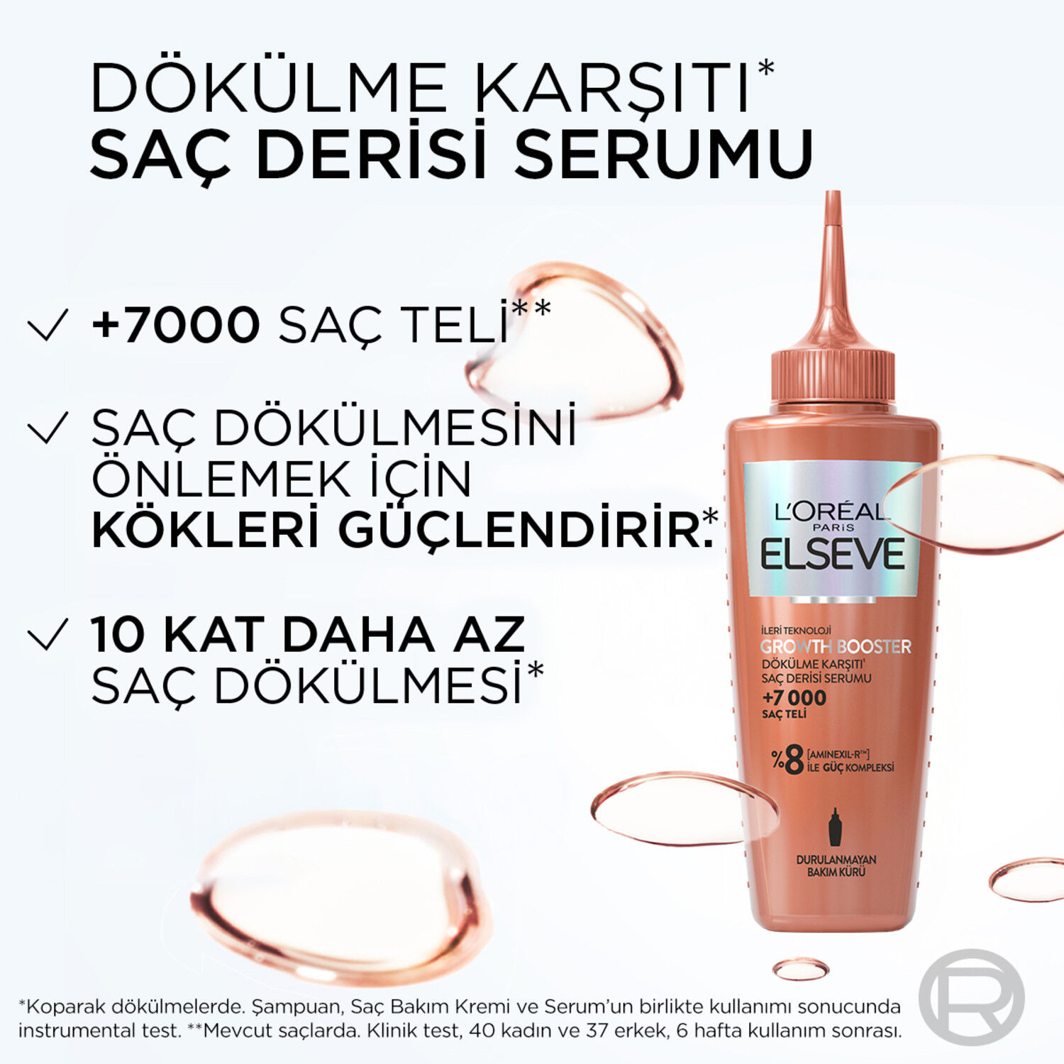 KLİNİK OLARAK TEST EDİLMİŞ FORMÜL AMINEXIL-R™ içeren ile güçlendirilmiştir: Saç dökülmesini* önlemek için kökleri güçlendirir. *Koparak dökülmelerde. Şampuan, Saç Bakım Kremi ve Serum’un birlikte kullanımı sonucunda instrumental test.