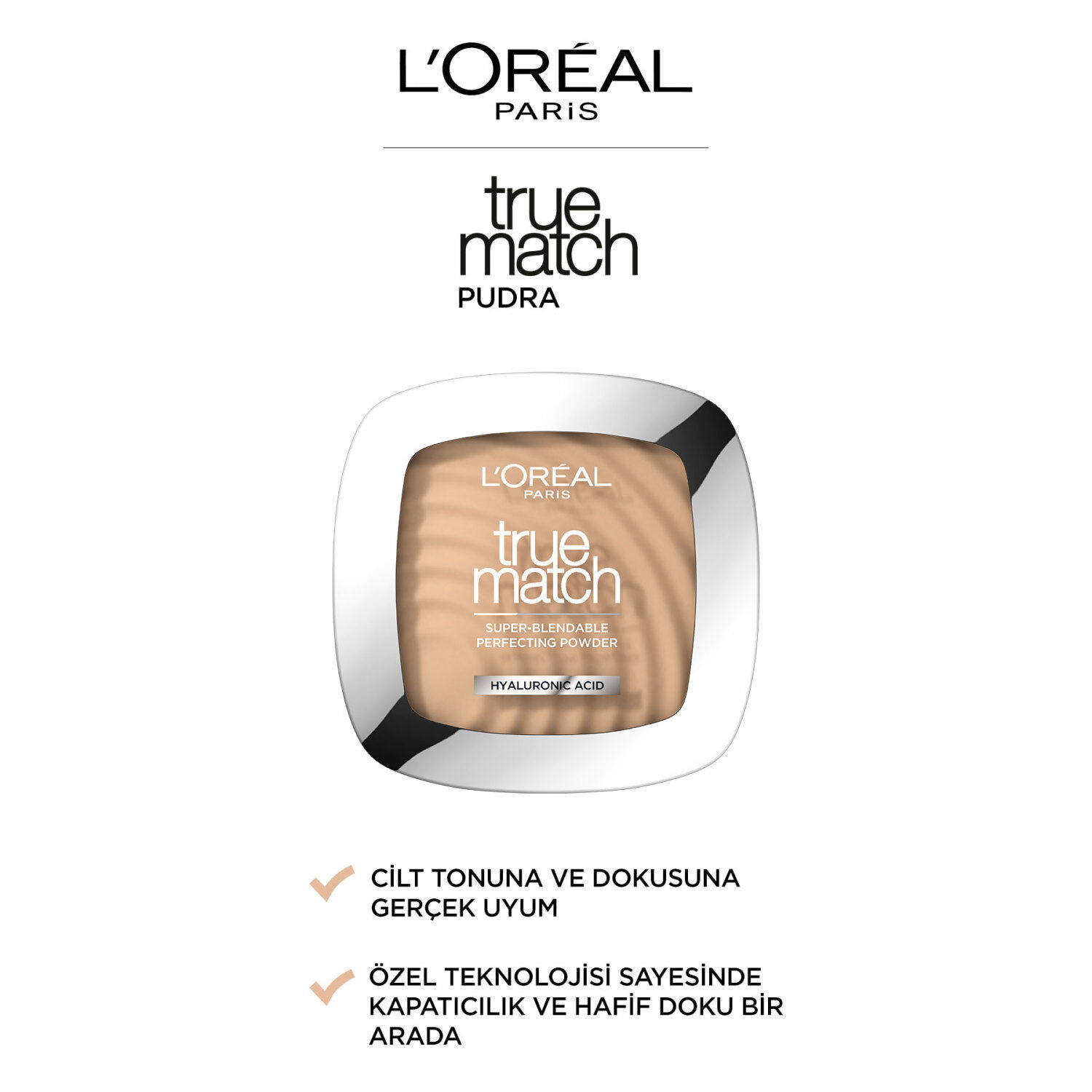 L'Oréal Paris'ten cilt tonuna ve dokusuna tamamıyla uyum sağlayan True Match Pudra. Kusursuzca yayılır, yokmuş gibi bir his verir. Kapatıcılık, pürüzsüz görünüm ve hafif doku bir arada. İçerisindeki aynası ve uygulama süngeri sayesinde pratik kullanım sunar.