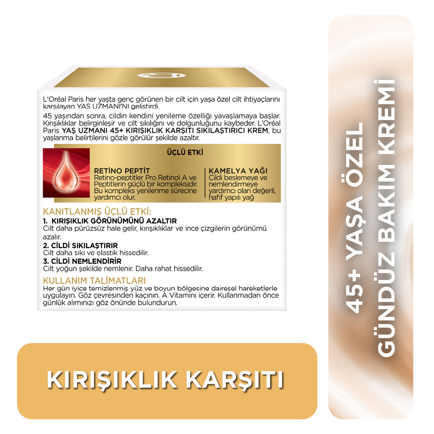 Cildin her yaşta özellikle nemlendirilmeye ihtiyacı vardır. 40'lı yaşlarda, cildin kendini yenileme özelliği yavaşlamaya başlar. Kırışıklıklar belirginleşir ve cilt sıkılığını kaybeder. L'Oréal Paris YAŞ UZMANI KIRIŞIKLIK KARŞITI SIKILAŞTIRICI KREM, 40'lı yaşların cilt ihtiyaçlarını karşılamak için tasarlandı.Retino-Peptidler, Pro Retinol A ve Peptitlerin güçlü bir kompleksidir. Bu kompleks yenilenme sürecine yardımcı olur. Yenileyici özellikleri ile bilinen OPUNTİA ÇİÇEĞİ özü ile zenginleştirilmiştir.