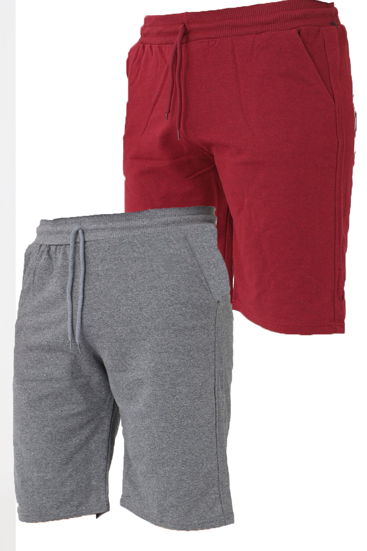 2 İplik Örme Pamuklu Erkek Şort 2 Adet - Bordo Gri