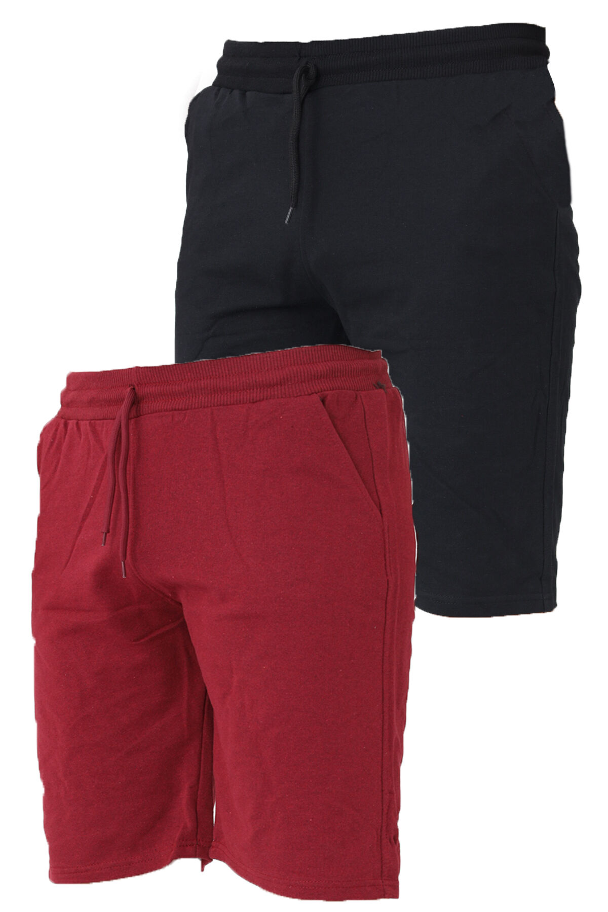 2 İplik Örme Pamuklu Erkek Şort 2 Adet - Siyah Bordo