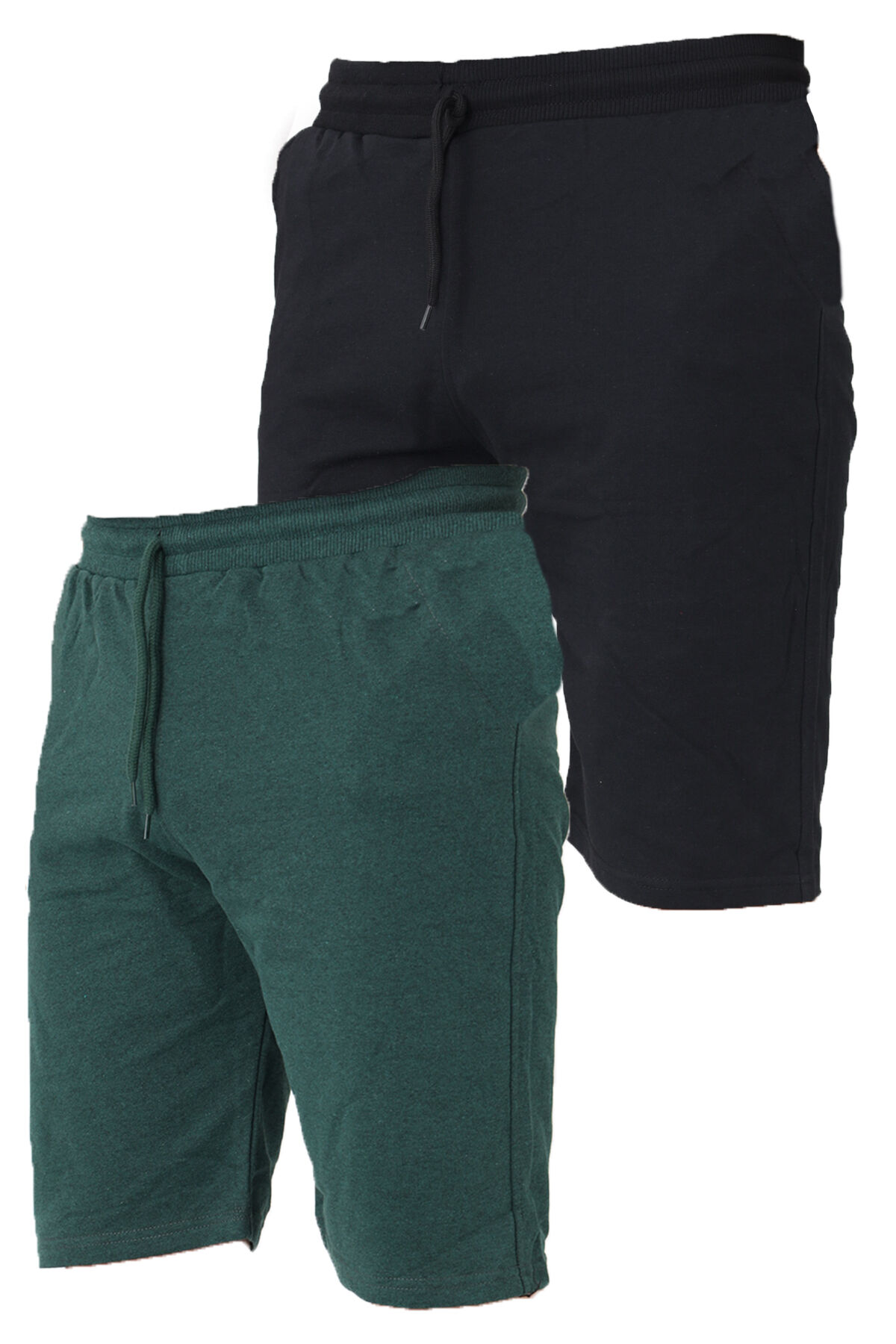 2 İplik Örme Pamuklu Erkek Şort 2 Adet - Siyah Yeşil