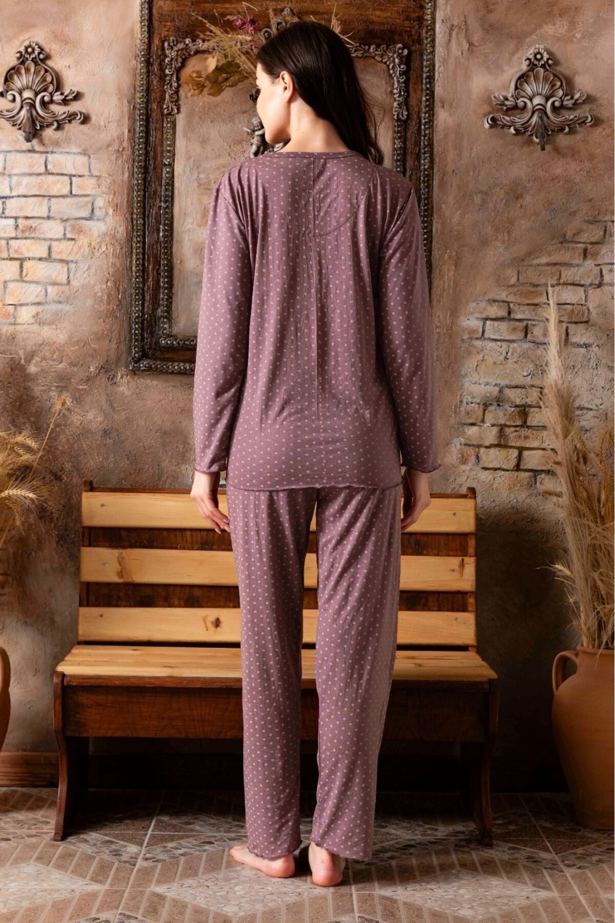 Homewear koleksiyonunun parçası olan bu pijama takımı evde şıklığı ve konforu bir arada yaşatır.
