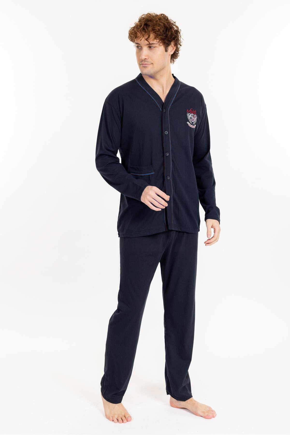 Battal Büyük Beden Önden Düğmeli Pamuklu Erkek Pijama Takımı