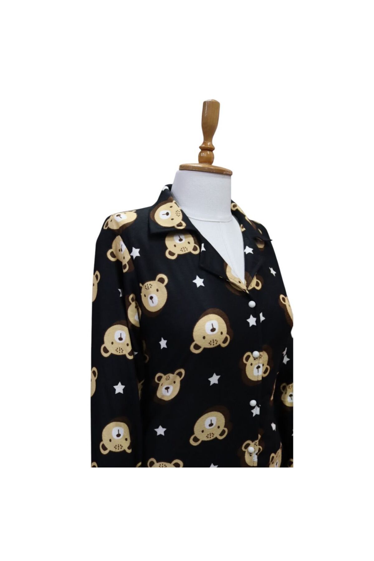 Ekose Desen Gömlek Yaka Süet Kadın Pijama Takımı - Süet Siyah