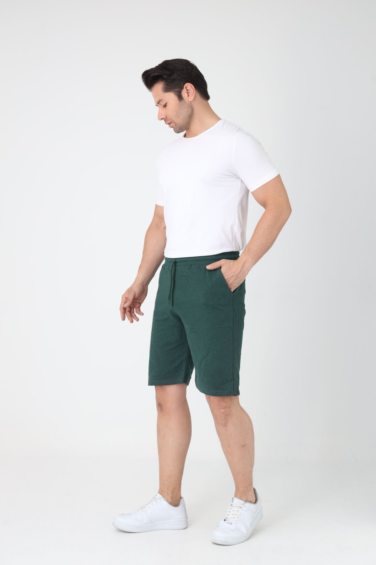 Erkek Pamuklu Penye Şort Regular Fit Şort - Yeşil
