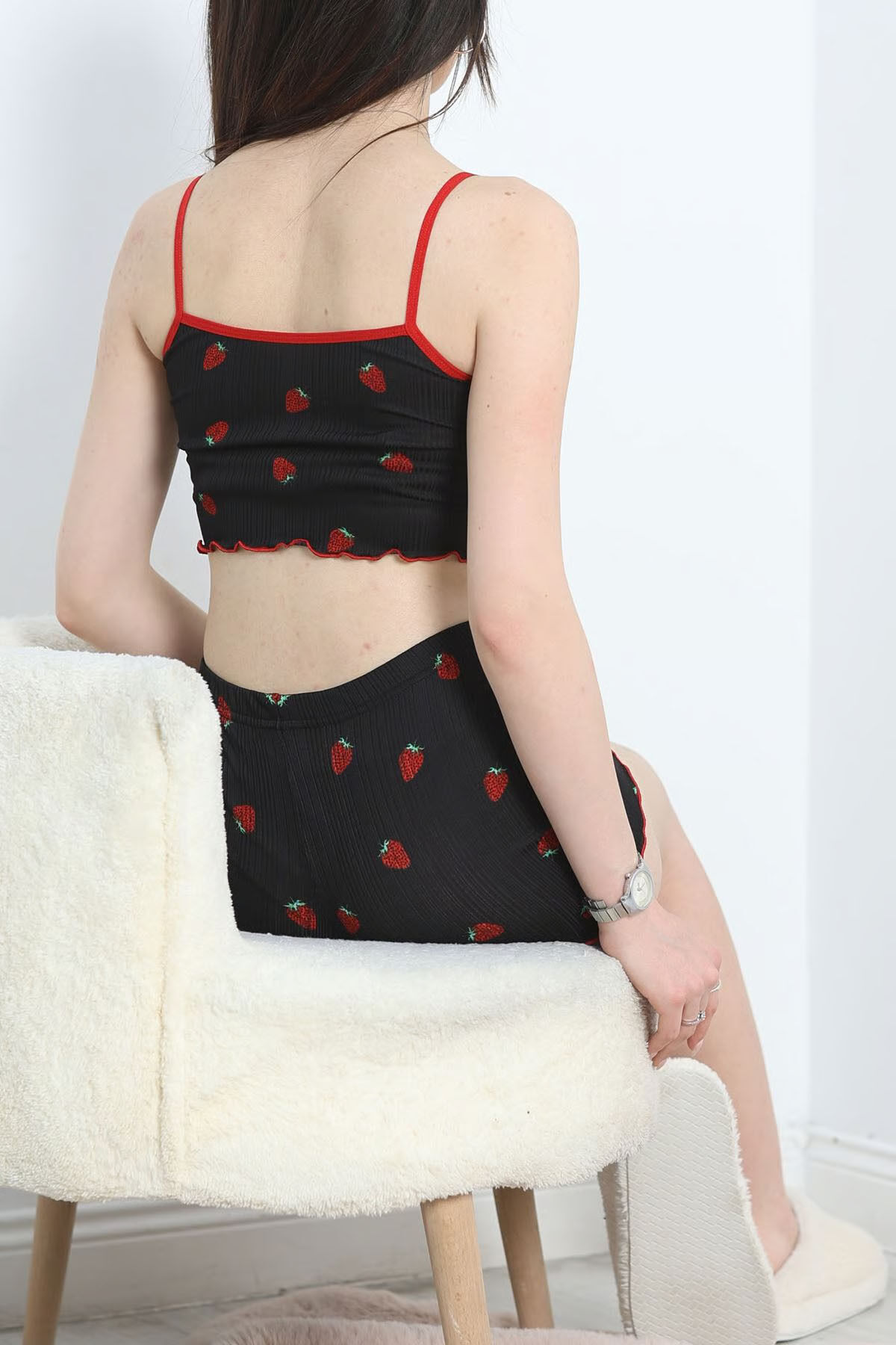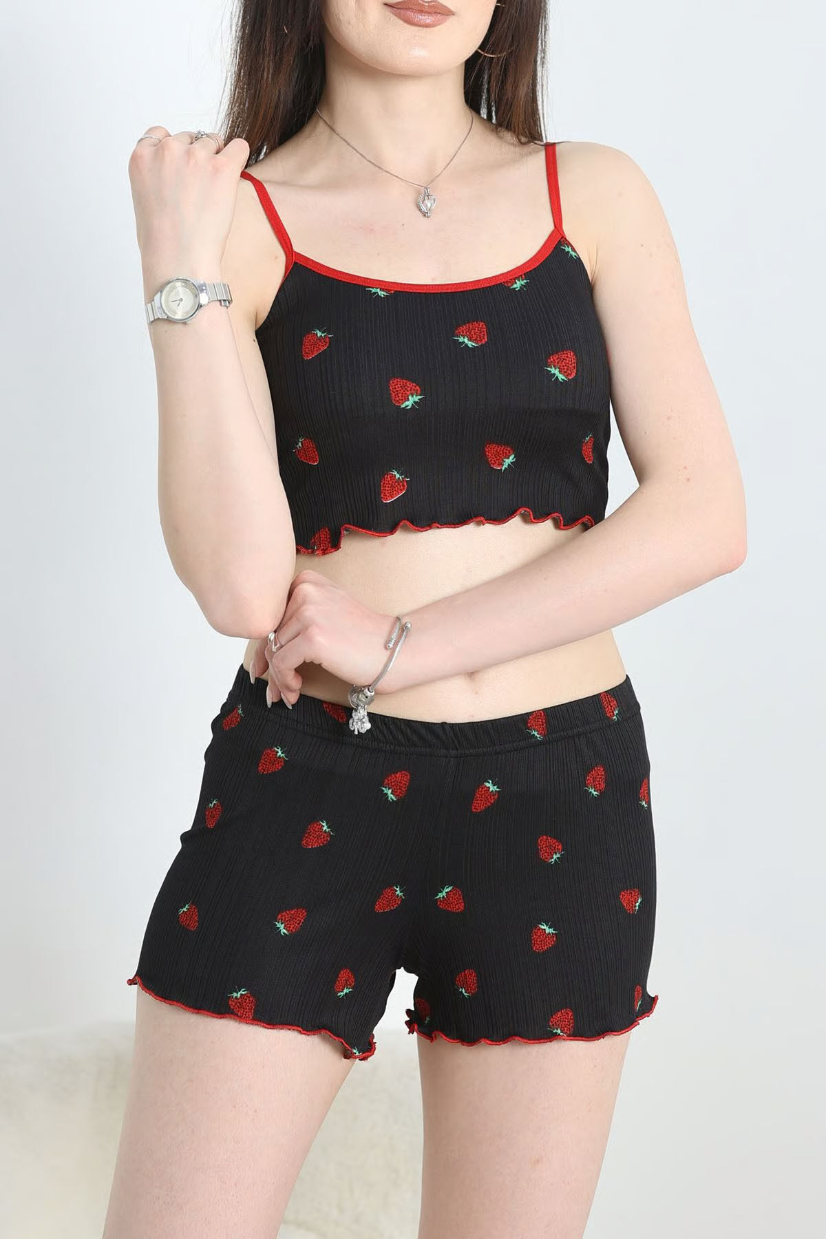 İp Askılı Şortlu Pijama Takımı - Siyah
