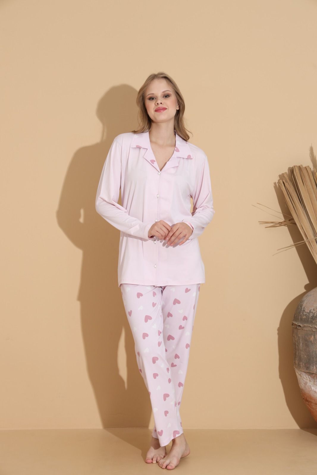 Lukitus Gömlek Yaka Düğmeli Milan Kumaş Uzun Kol Kadın Pijama Takımı, şıklıktan ödün vermeyen kadınların vazgeçilmezi olmaya aday. Evde rahat etmek isteyen ancak tarzından ödün vermek istemeyen kadınlar için ideal bir seçimdir. Gece pijama takımı olarak kullanabileceğiniz gibi, günlük hayatta da şık bir görünüm elde etmek isteyenler için biçilmiş kaftandır.