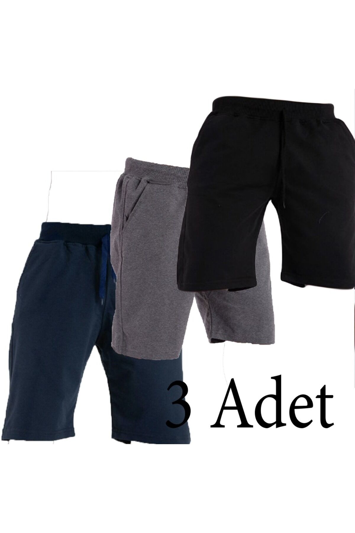 Pamuklu Cepli Basic Erkek Şort 3 Adet - Lacivert Gri Siyah