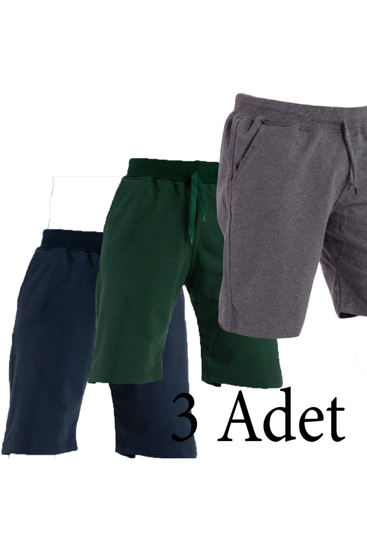 Pamuklu Cepli Basic Erkek Şort 3 Adet - Lacivert Yeşil Gri