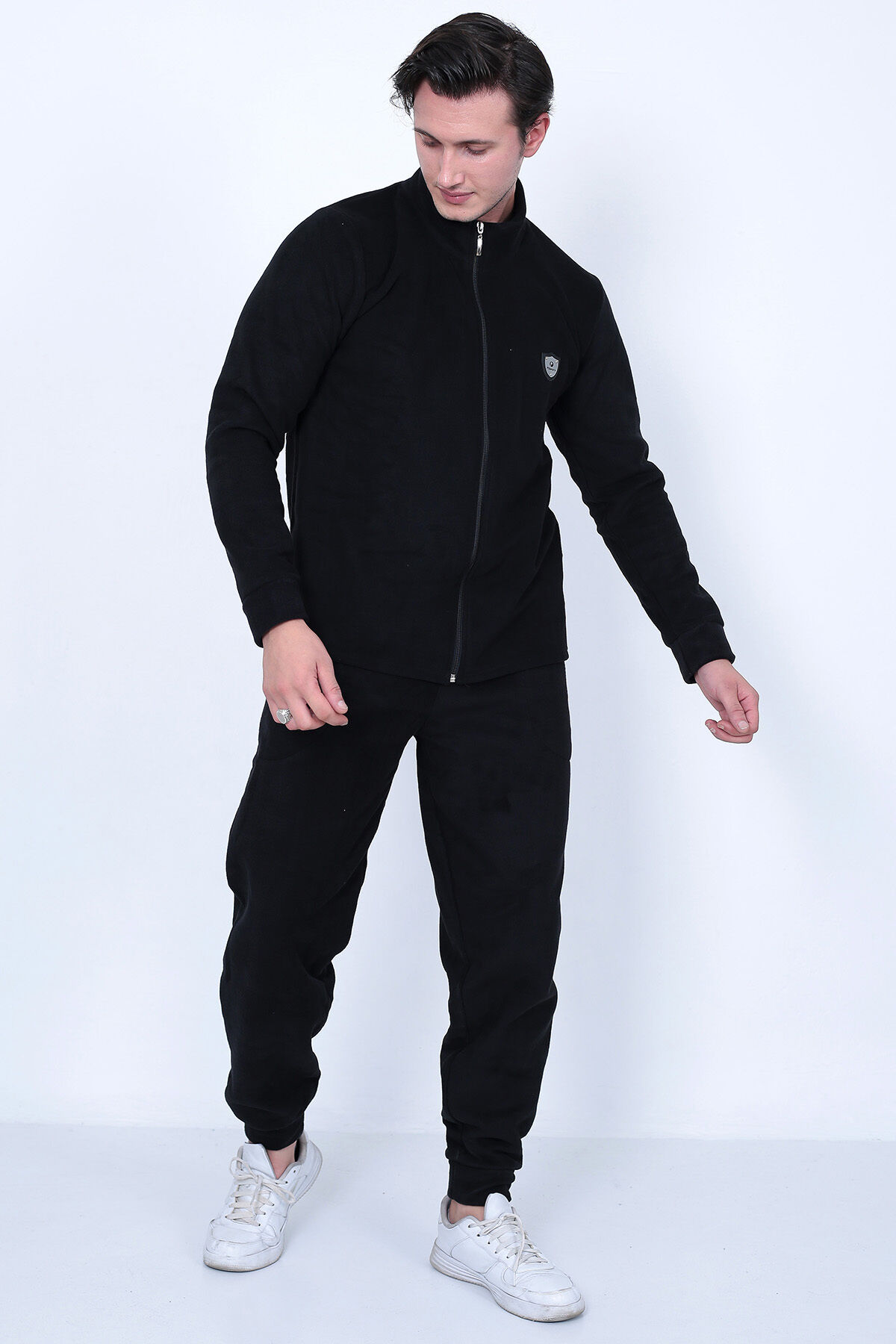 Tam Fermuarlı Polar Erkek Eşofman Takımı - Siyah