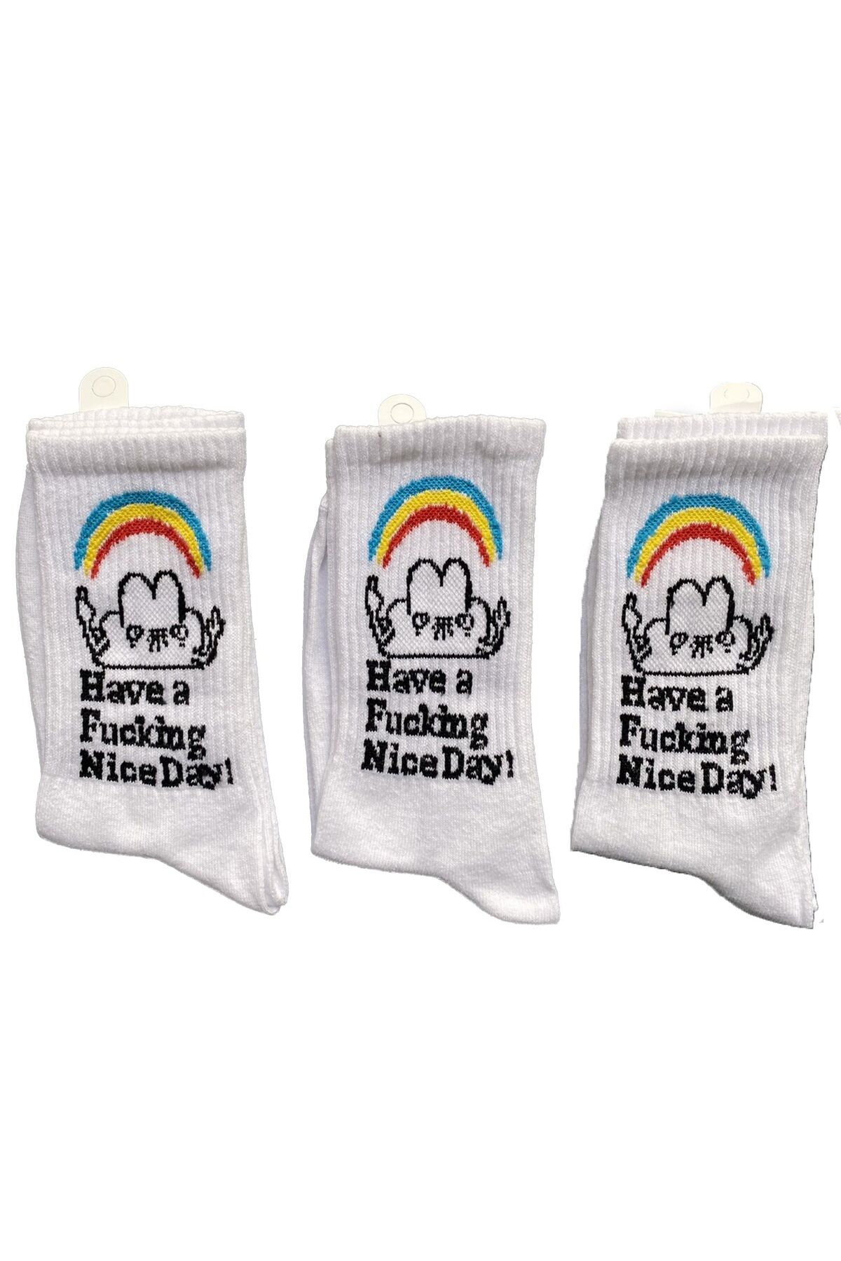 Unisex Eğlenceli Desenli Soket Çorap 3 Adet - Gökkuşağı Desen