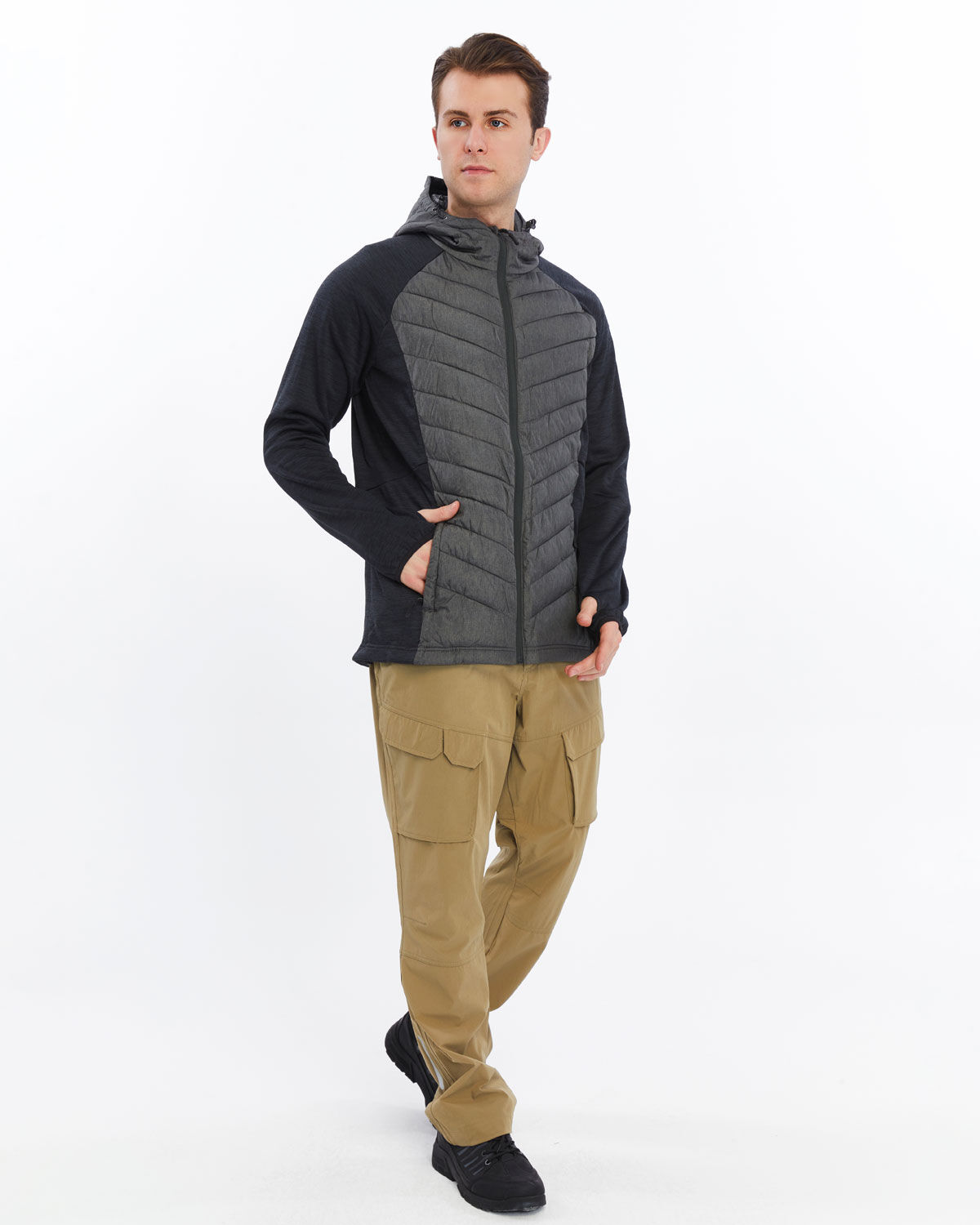 • HYBRID TASARIM: Ön kısımda soğuk havayı yalıtan ve merkezi alanda ısıyı koruyan kapitone parçalı hibrit tasarım. Yanlarda ve sırtta bulunan nefes alabilen örme malzemeler son derece nefes alabilir, nemi hızla uzaklaştırır ve kuru kalmanızı sağlar. Farklı vücut ısısını koruyan ve yalıtım sağlayan bir kumaş göğüs kısmına verilirken, daha fazla nefes alabilen ve daha dayanıklı kumaşlar, ceketin omuz ve sırtına yerleştirilmiştir. Bu tasarım, ısınma, esneklik ve dayanıklılık dengesini sağlamak için tasarlanmıştır.