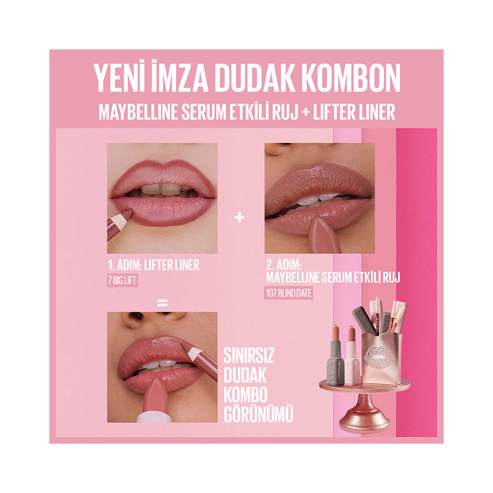 Maybelline New York Lifter Lipstick Ruj Satin 107 Blind Date: Dolgun ve Canlı Dudaklar