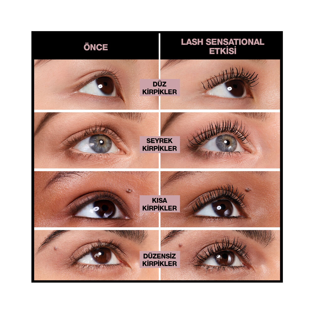 Maybelline New York Maskara Lash Sensational Maskara Black Yelpaze etkisi ile tek tek ayrılmış dolgun kirpik görünümü elde etmenizi sağlıyor. Kirpiklerin topaklanmasını ve tortu oluşmasını engelleyen ürün rahat kullanımı nedeniyle tek sürüşte rengin oluşmasını sağlıyor. İçeriğinde yer alan özel vitaminler nedeniyle kirpik diplerini besleyerek nemlendiren ürün kirpiklerin bakımını sağlayarak çok daha canlı görünmesini sağlıyor. Derin ve çekici bakışlar sağlayan mascara dermatolojik testlerden geçirildiği için alerjen etki yaratmıyor ve her cilt tipi tarafından sorunsuzca kullanılabiliyor.