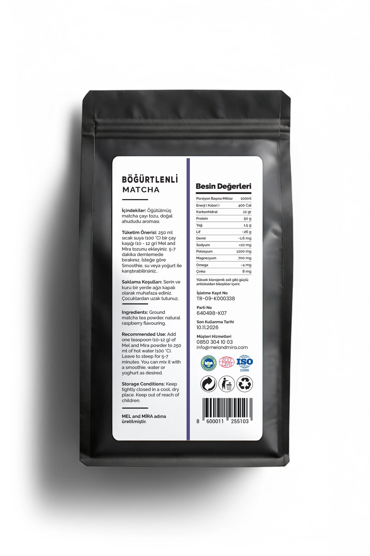 Mel and Mira Böğürtlen Aromalı Matcha Tozu 50g, Berry Matcha Powder
