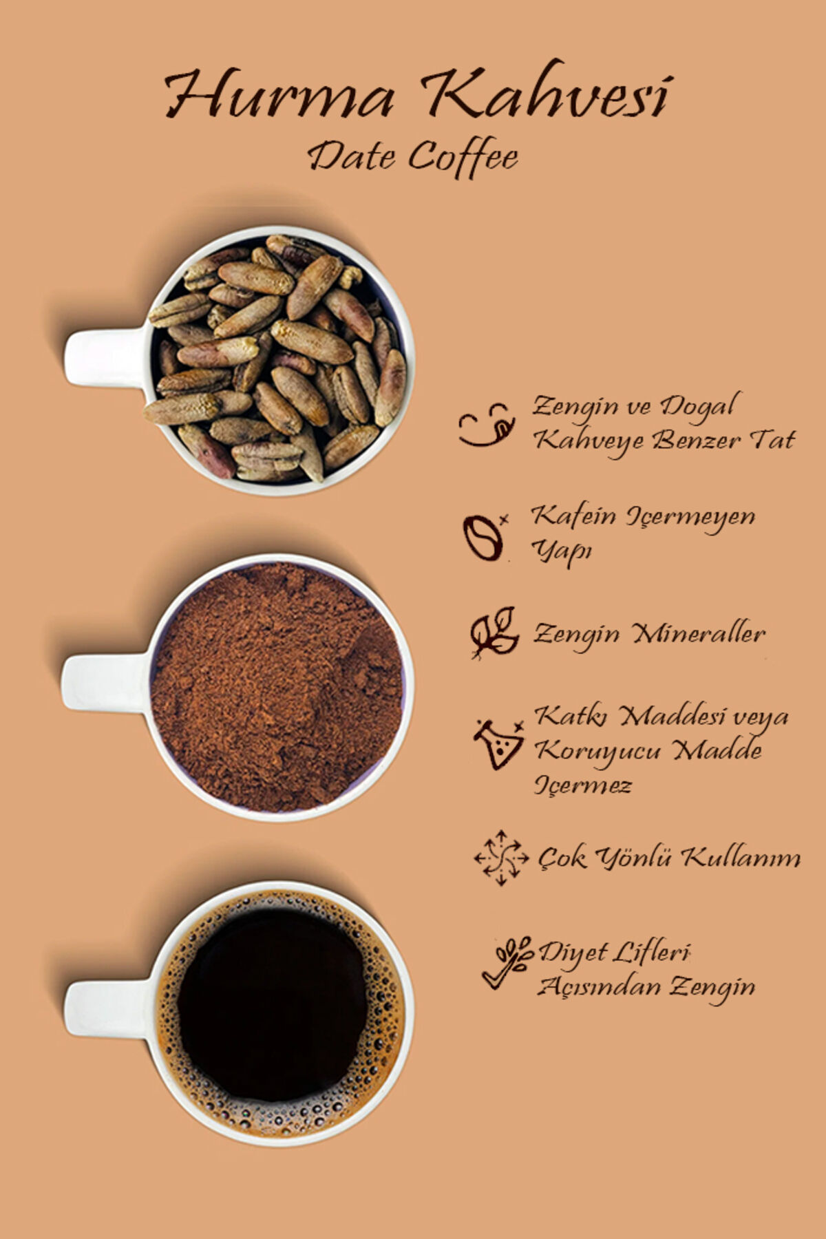 Mel and Mira Kafeinsiz Saf Hurma Kahvesi 200g – Organik | Vegan | Katkısız - Decaffeinated Pure Date Coffee