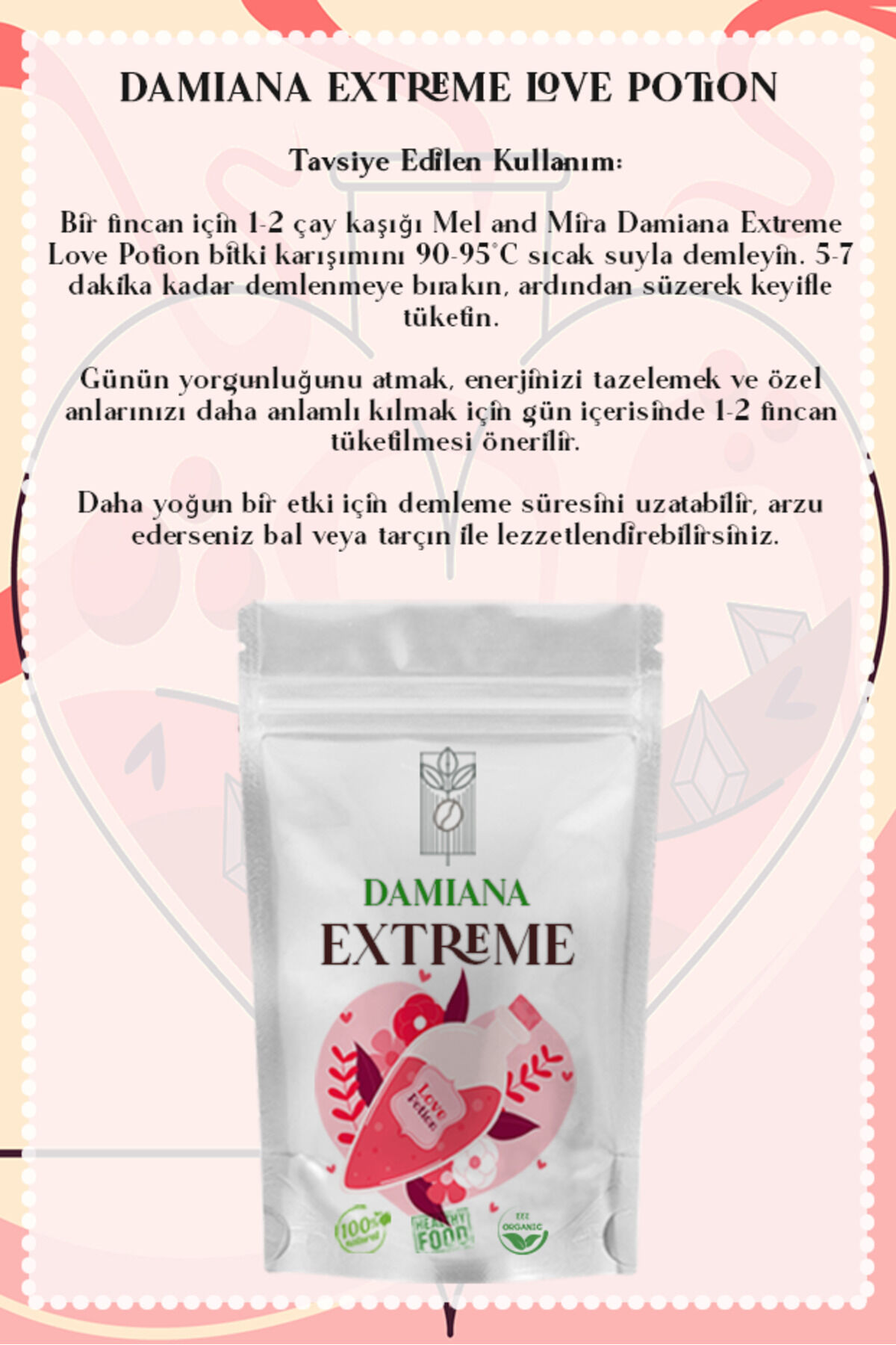 Mel and Mira Love Potion Damiana Extreme Tea 50g, - Damiana & Ginsengli Bitki Çayı, Destekleyici Özel Karışım