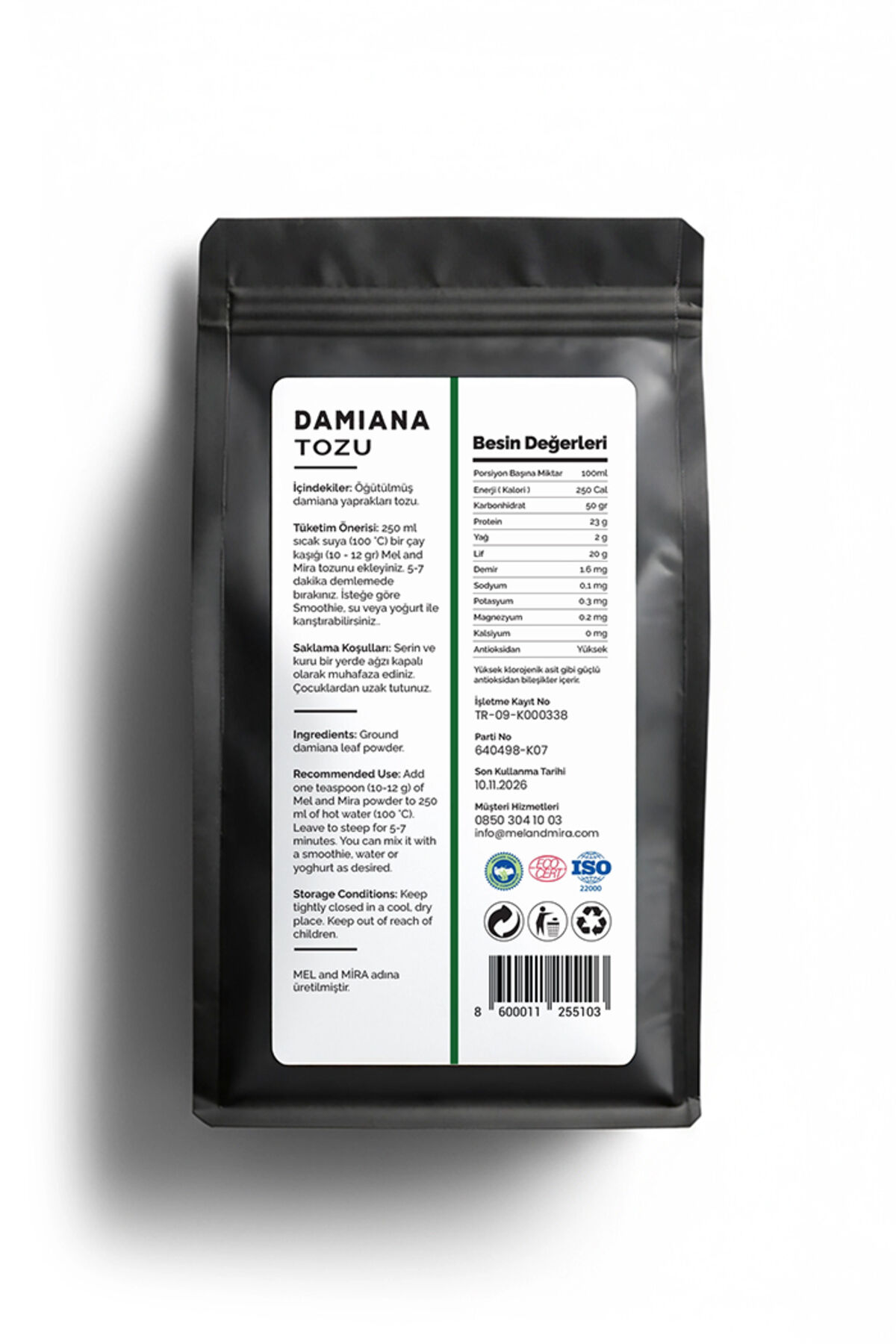 Mel and Mira Organik Damiana Tozu 100g, Premium Herbal Damiana Powder ( Glutensiz, Vegan, Katkısız )