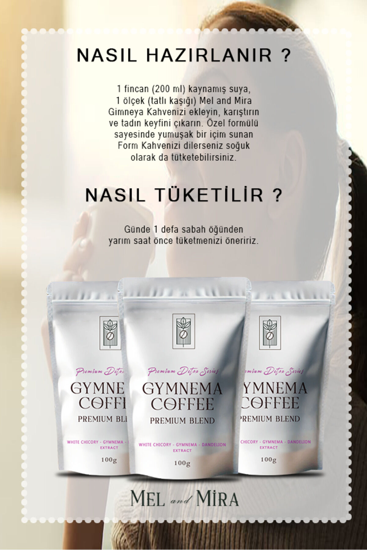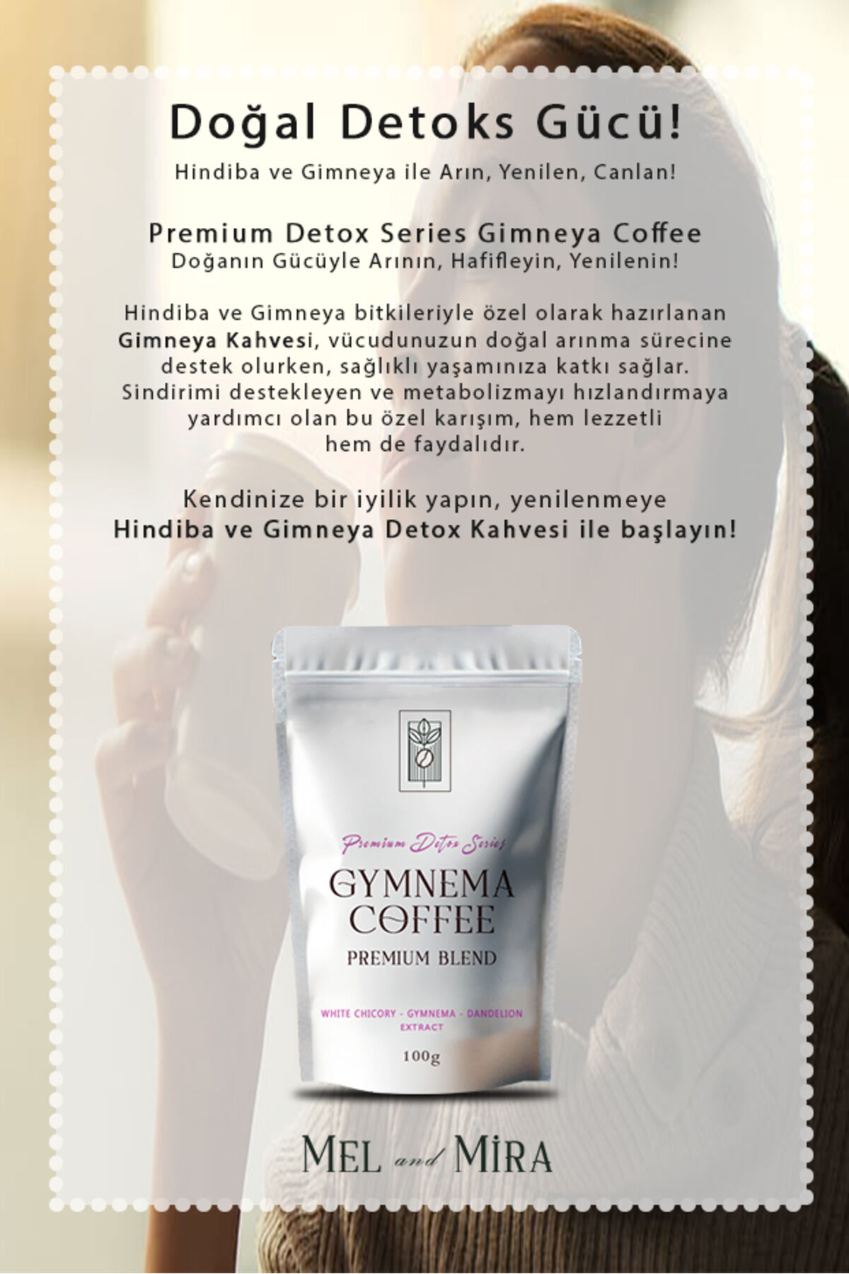 Mel and Mira Premium Detox Series Gymnema Coffee 100g, Gimneya ve Hindiba İçerikli Özel Formül