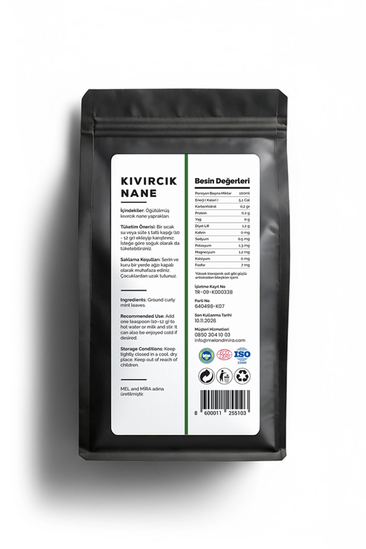 Mel and Mira Premium Spearmint Tea 50g, Kıvırcık Nane Çayı - Sindirim Dostu | Organik | Vegan | Katkısız