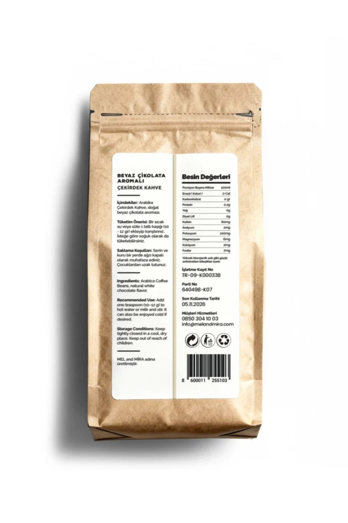 Mel and Mira White Chocolate Bean Coffee 200g, Beyaz Çikolata Aromalı Çekirdek Kahve