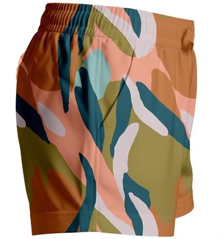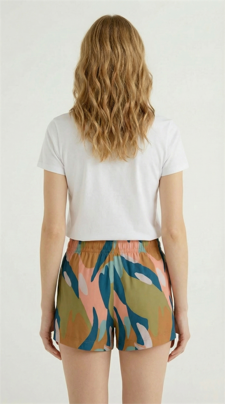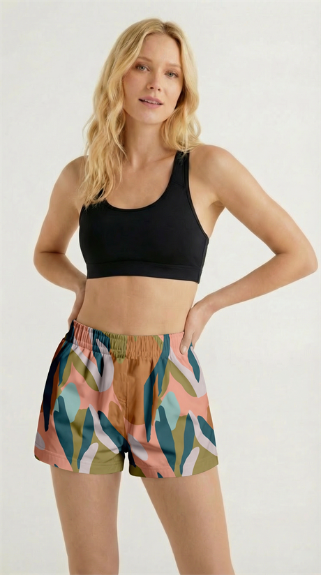 Modern Çizim Desenli Renkli Hızlı Kuruyan Esnek Kumaş İki Cepli Kısa Boy Kadın Mayo Deniz Şortu