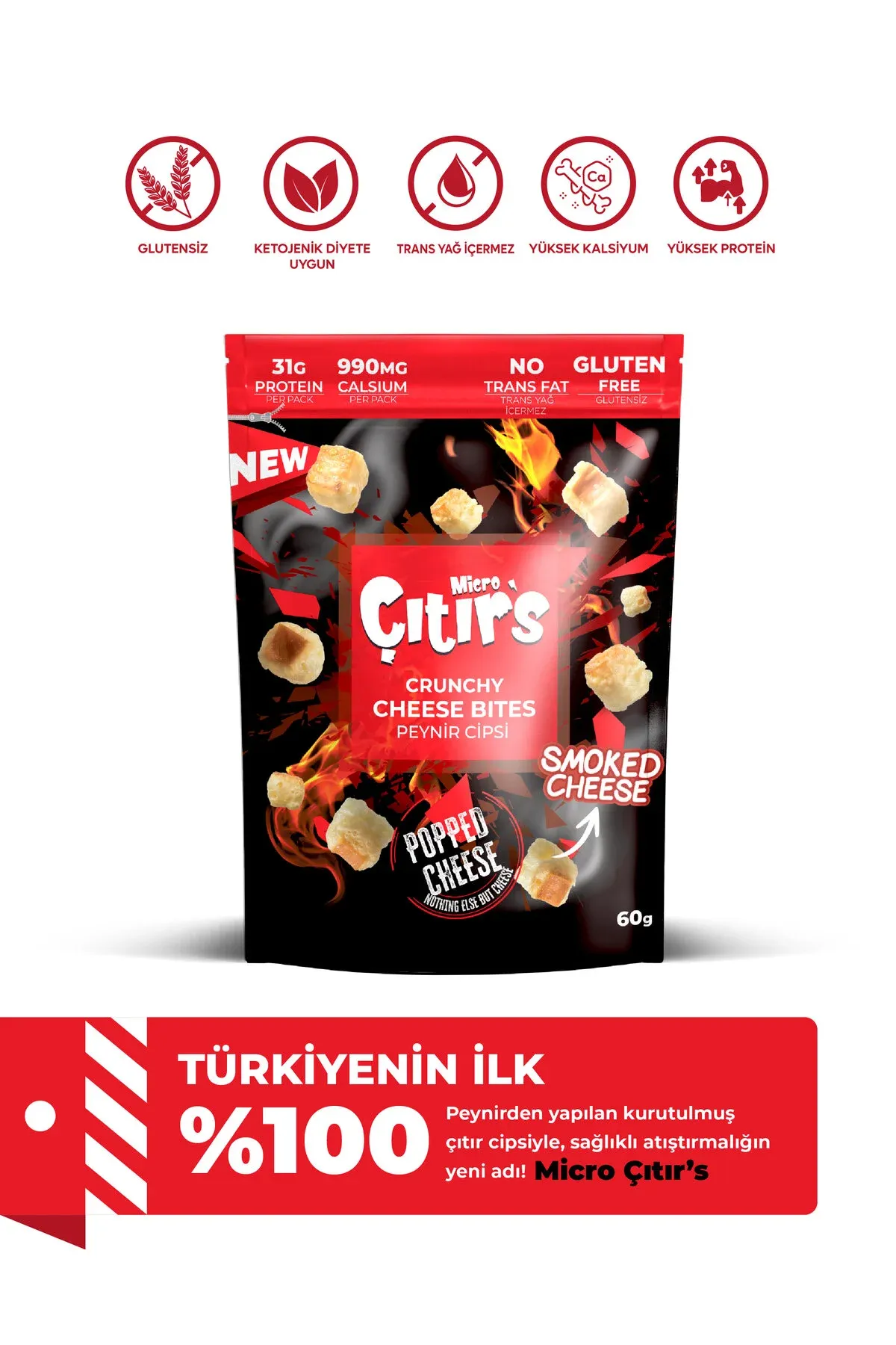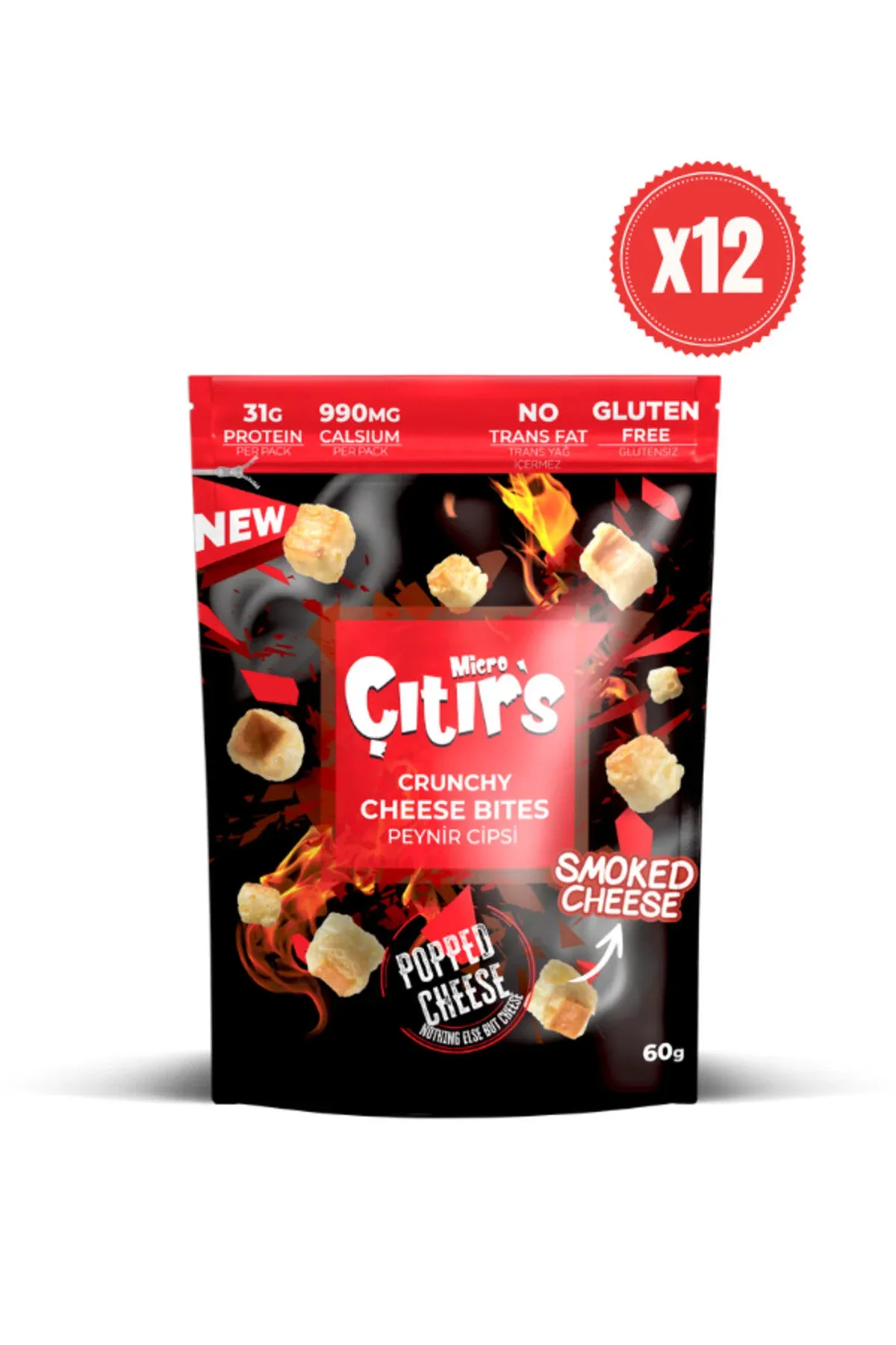 Micro Çıtır's Kurutulmuş Peynir Cipsi %100 İsli Peyniri 60 gr X 12 Adet