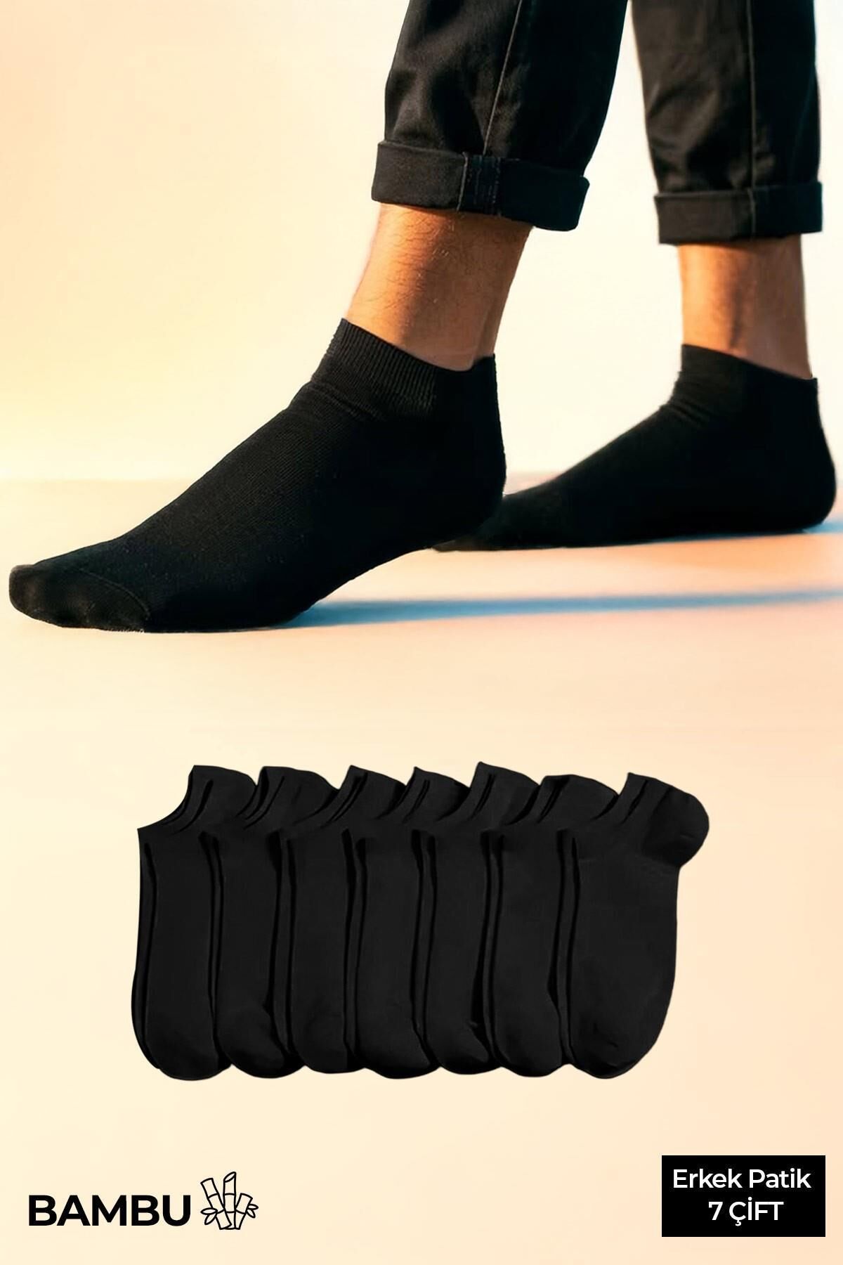 BAMBU Erkek Kutulu 7 Çift Patik Çorap Siyah