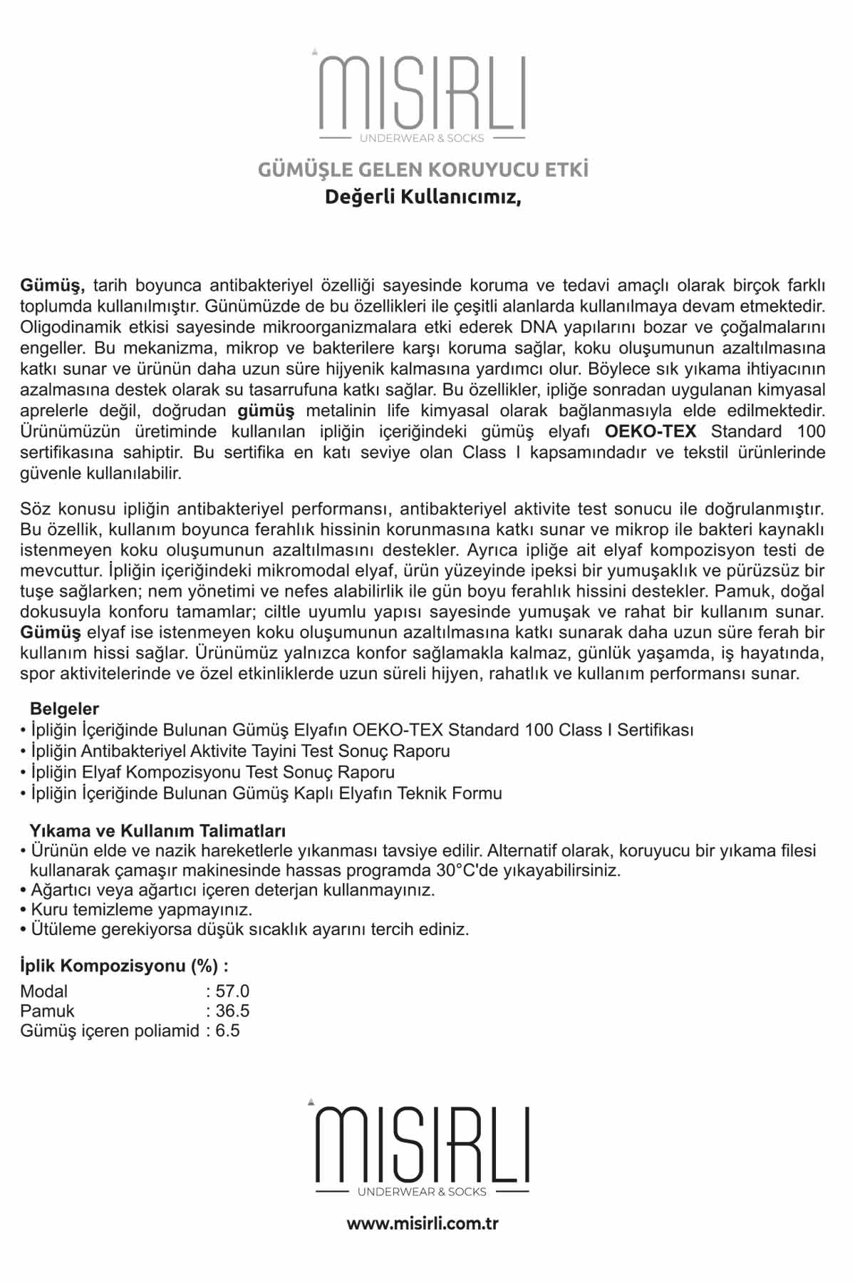 Ürün İçeriği: %77 Pamuk, %12 Polyamid, %10 Gümüş Polyester, %1 Elastan