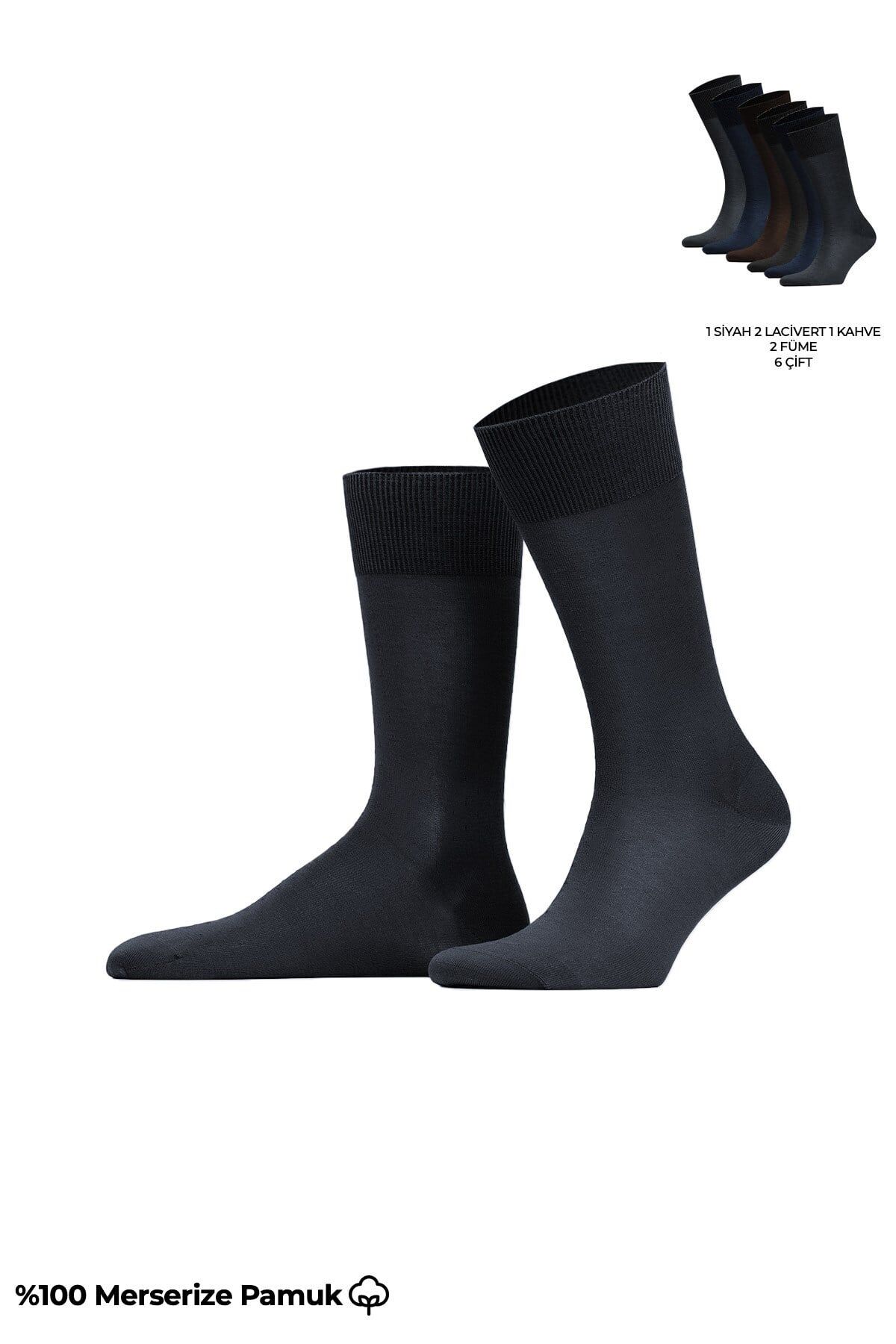 Erkek %100 Merserize 6 Çift Düz Süper İnce Soket Çorap Çok Renkli