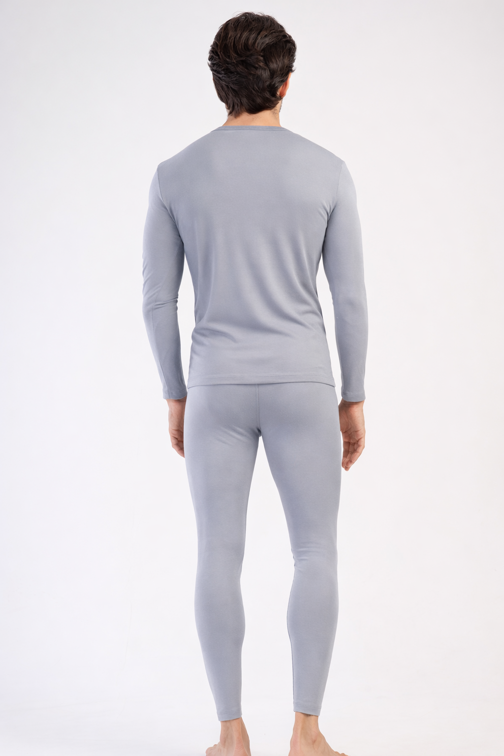 Erkek Bisiklet Yaka Uzun Kollu İçlik Takımı Gri