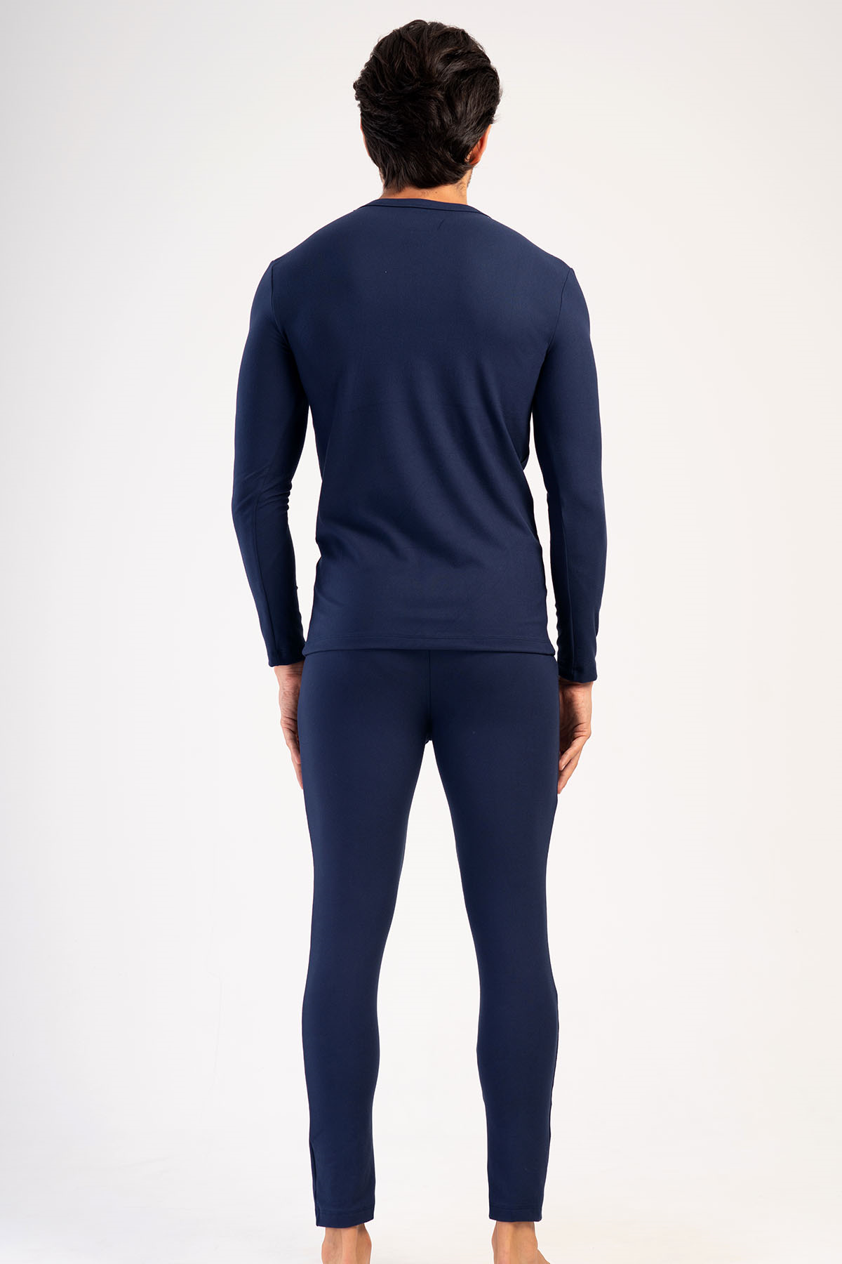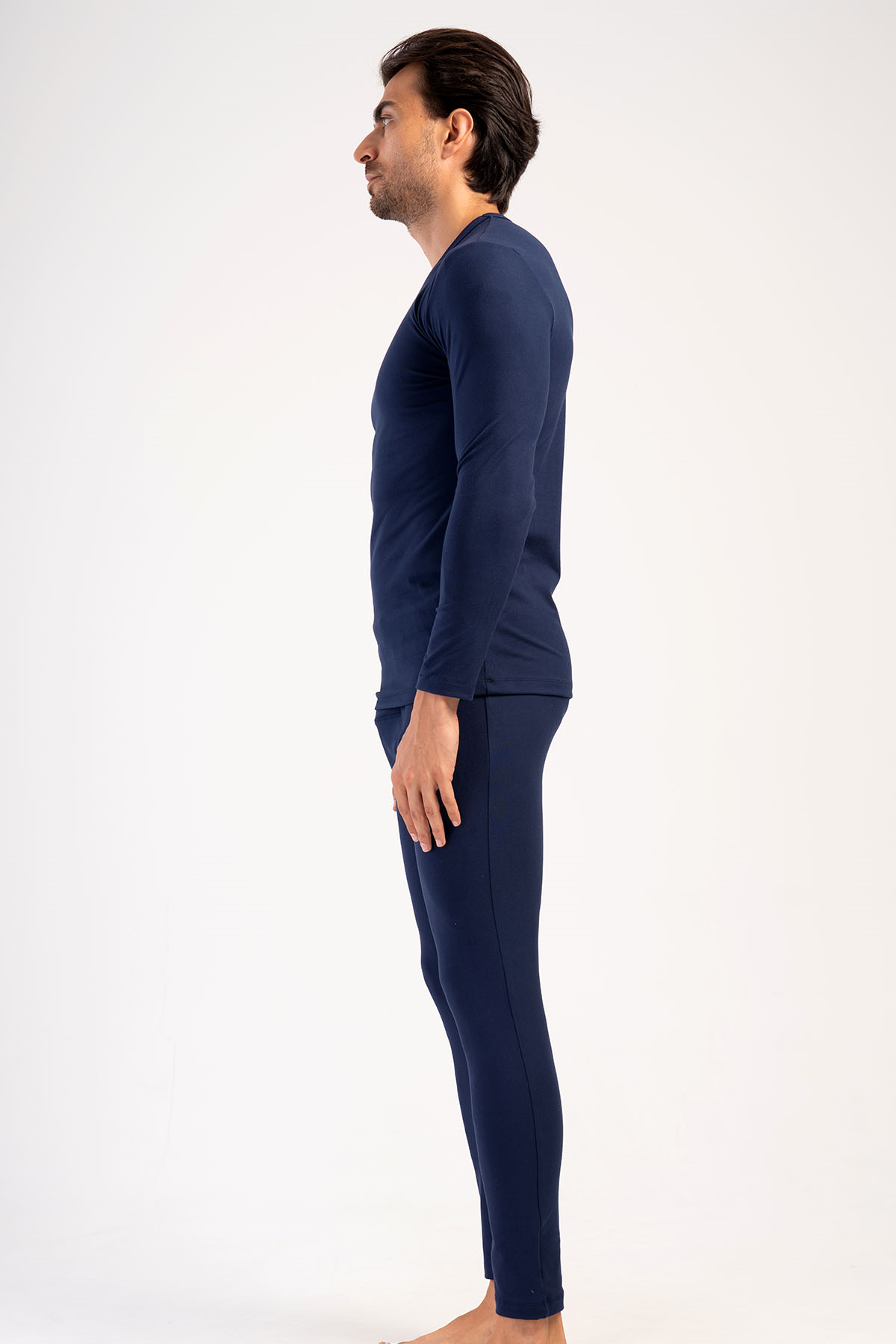 Erkek Bisiklet Yaka Uzun Kollu İçlik Takımı Lacivert