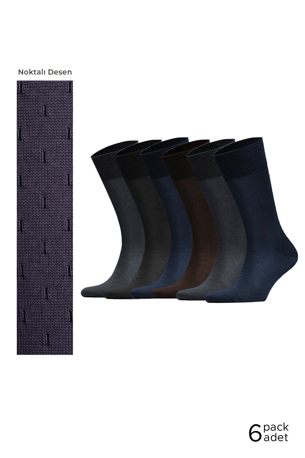 Erkek Merserize 6 Çift Noktalı Desenli Süper İnce Soket Çorap Çok Renkli