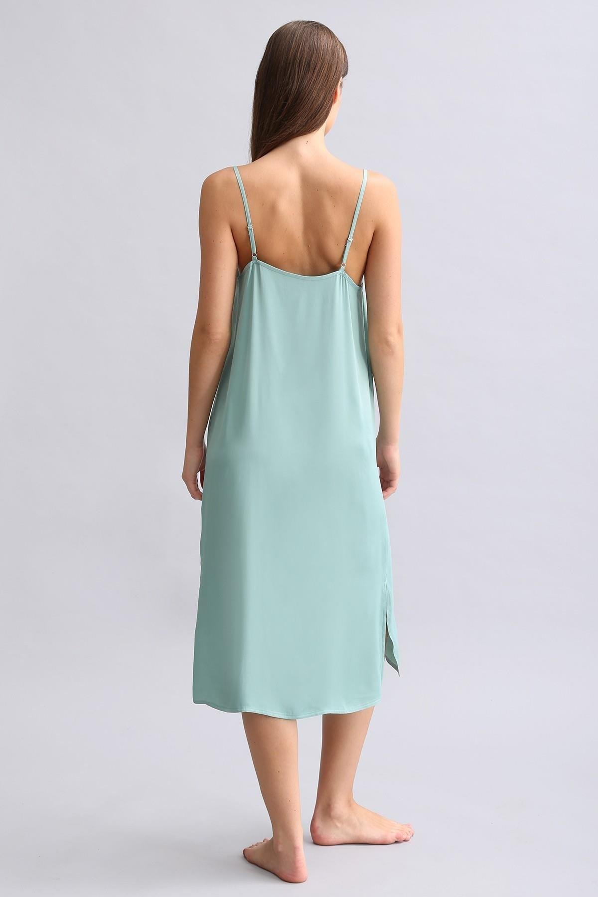 Kadın Dantel Detaylı Saten Gecelik Çağla Yeşili