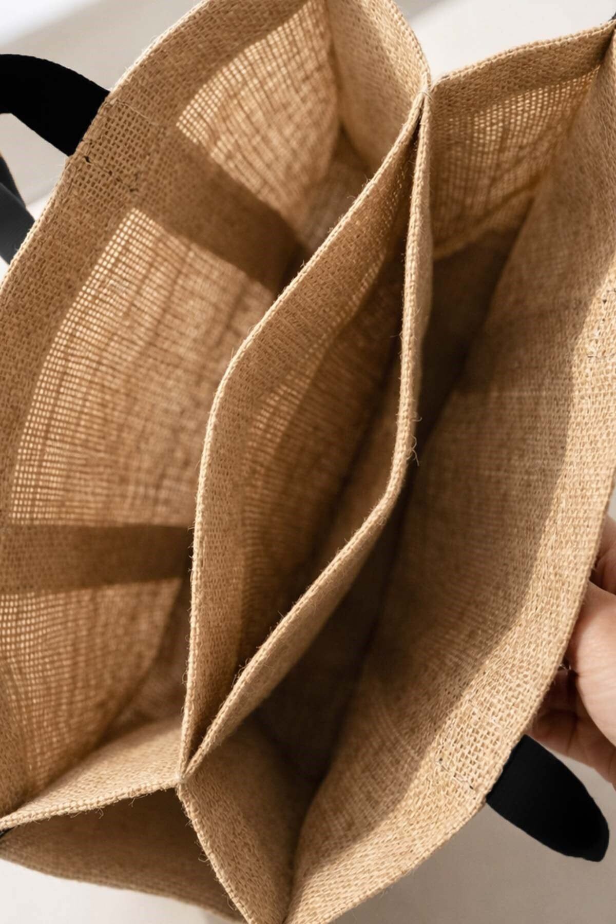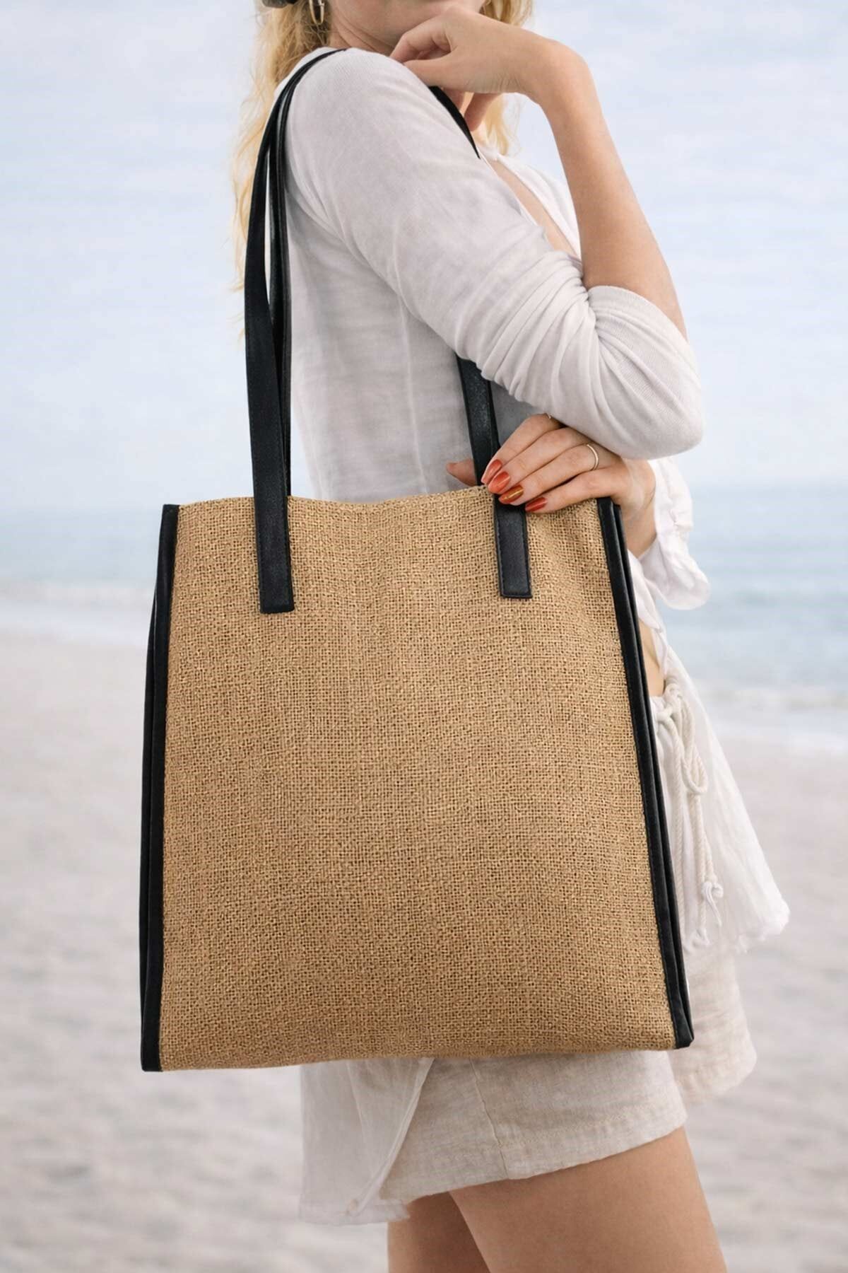 Hasır jüt kumaştan üretilen bu plaj çantası, doğal ve dayanıklı yapısı sayesinde yaz aylarında hem şık hem de kullanışlı bir kullanım sunar. Jüt hasır dokusu sayesinde nefes alabilen bir yapıya sahiptir ve doğal liflerden oluştuğu için çevre dostu bir üründür.