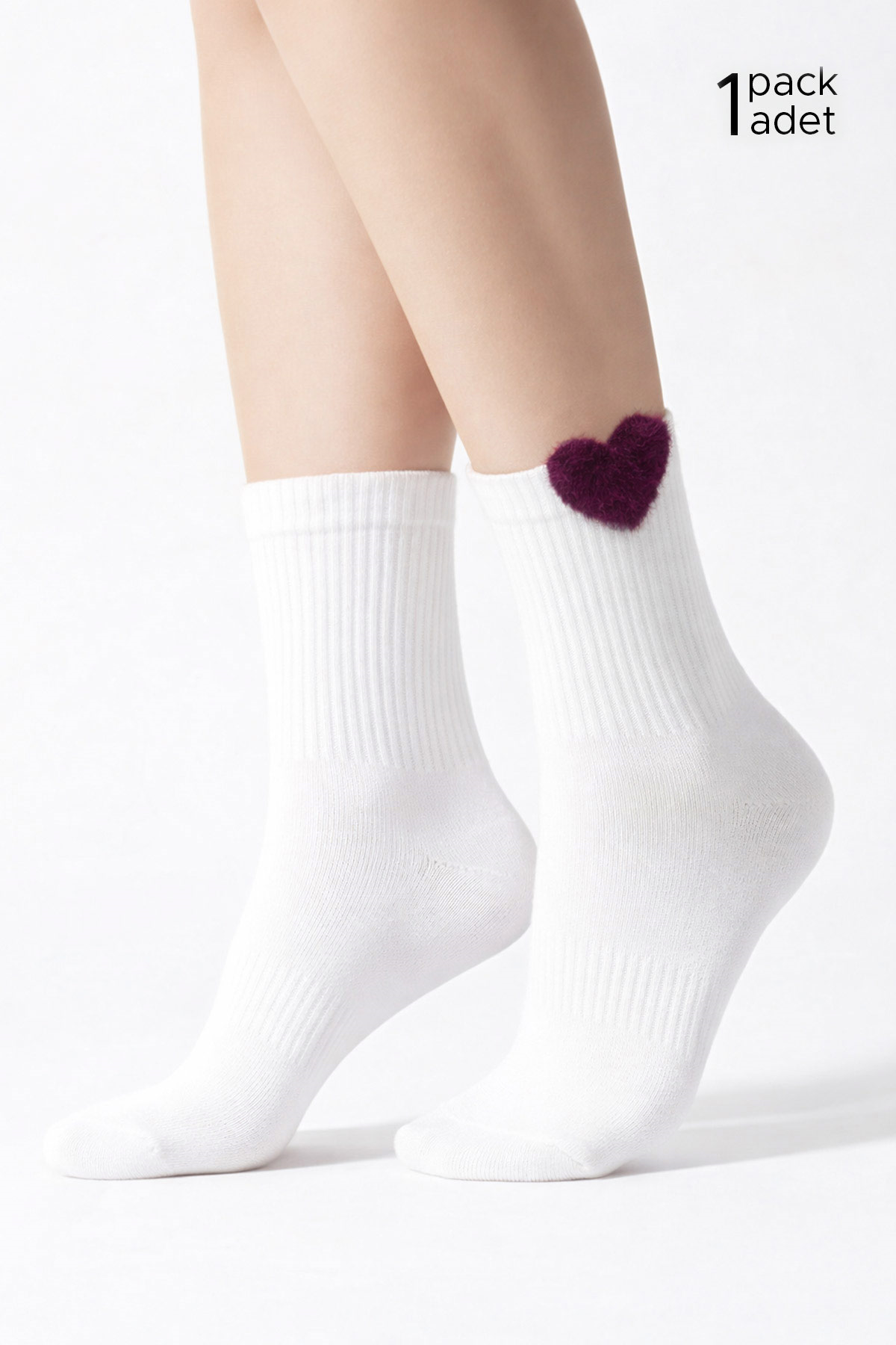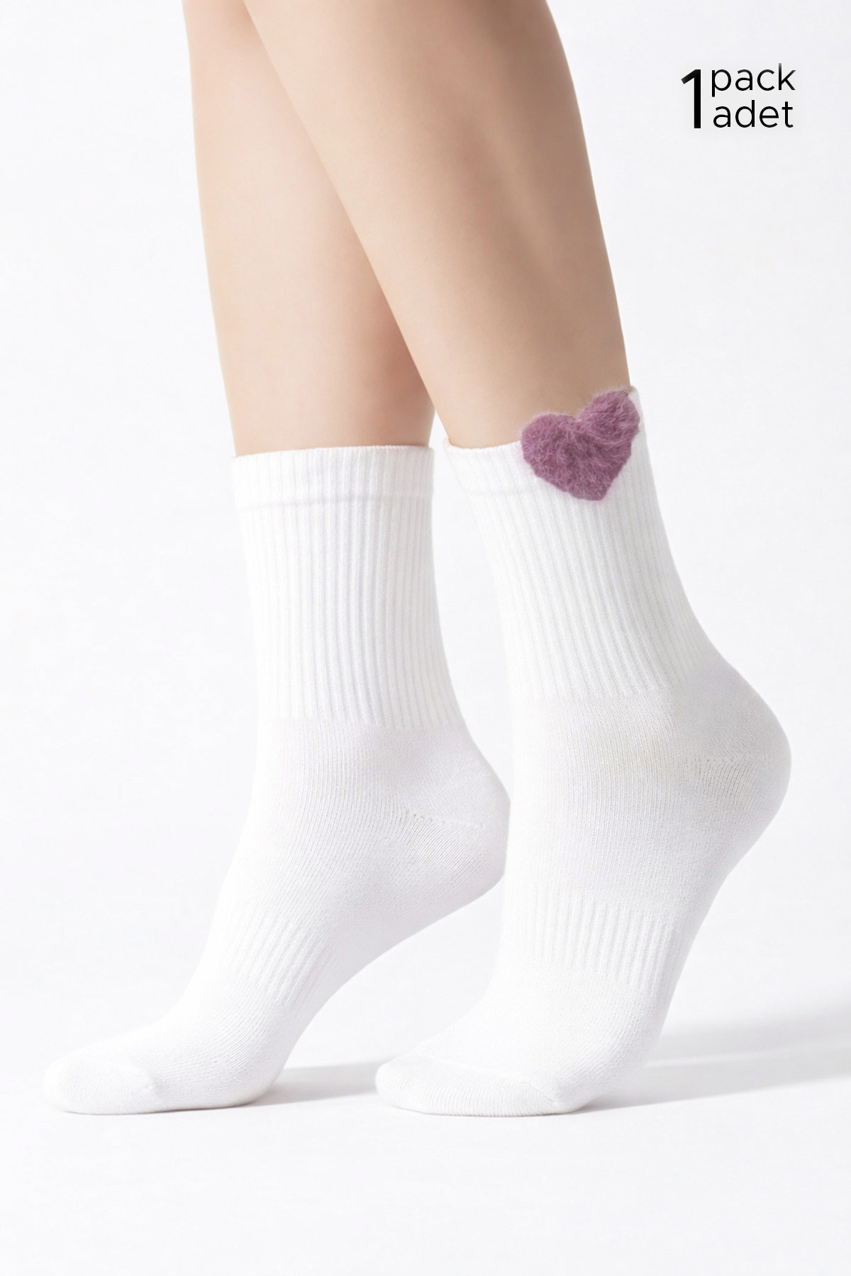 Kadın Pamuklu Kalpli 4 Çift Kısa Konç Çorap Beyaz